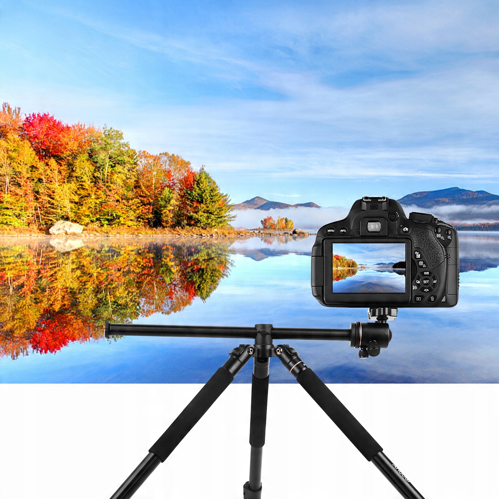 Повернення горизонтально на 360 ° та головку кулі: Центральний стовпчик можна встановити по горизонталі і повернути 360 ° по горизонталі, щоб вільно робити панорамні фотографії та макрос. Панорамна головка кулі ідеально підходить для фотографування панорам, а вбудовані рівні ідеально підходять для регулювання швидкого рівня. Завдяки цій точній і стійкій головній кульки та горизонтальній центральній осі ви можете зняти ідеальну фотографію або записати фільм практично під кожним кутом.