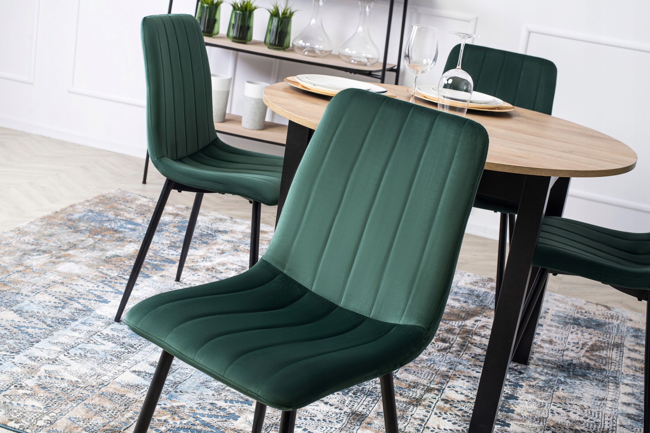 - Стіл HARRY дубово-чорного кольору Riviera + 4 крісла IBIS пляшково-зелено-чорного кольору