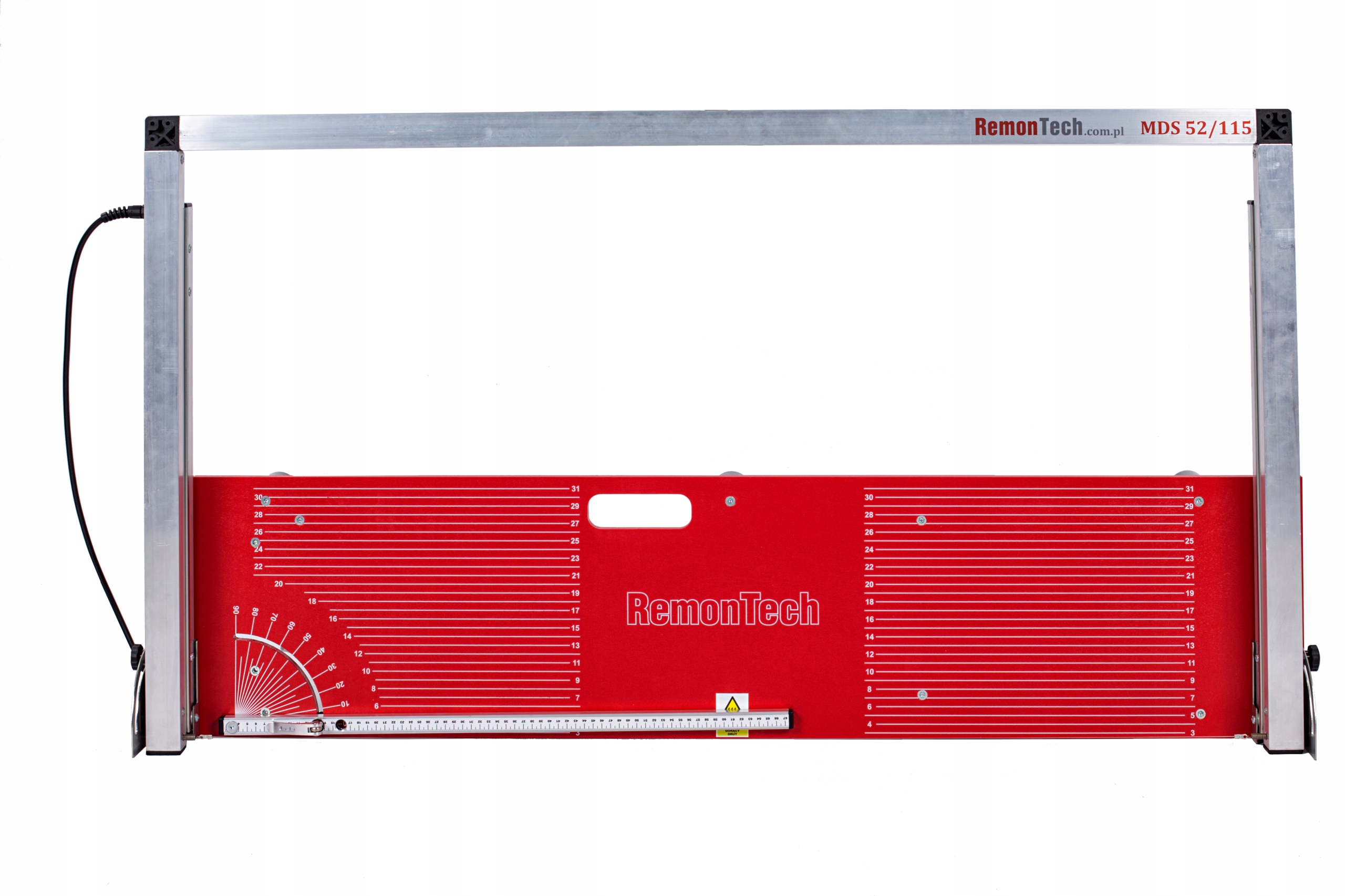 - Машина оснащена напрямними затискними гвинтами, які дозволяють фіксувати рухому важіль на потрібній висоті в діапазоні від 0 до 52 см, ця функція дозволяє різати дошки товщиною, наприклад, від 40 дошки товщиною см, вирізаємо дві дошки товщиною 20 см