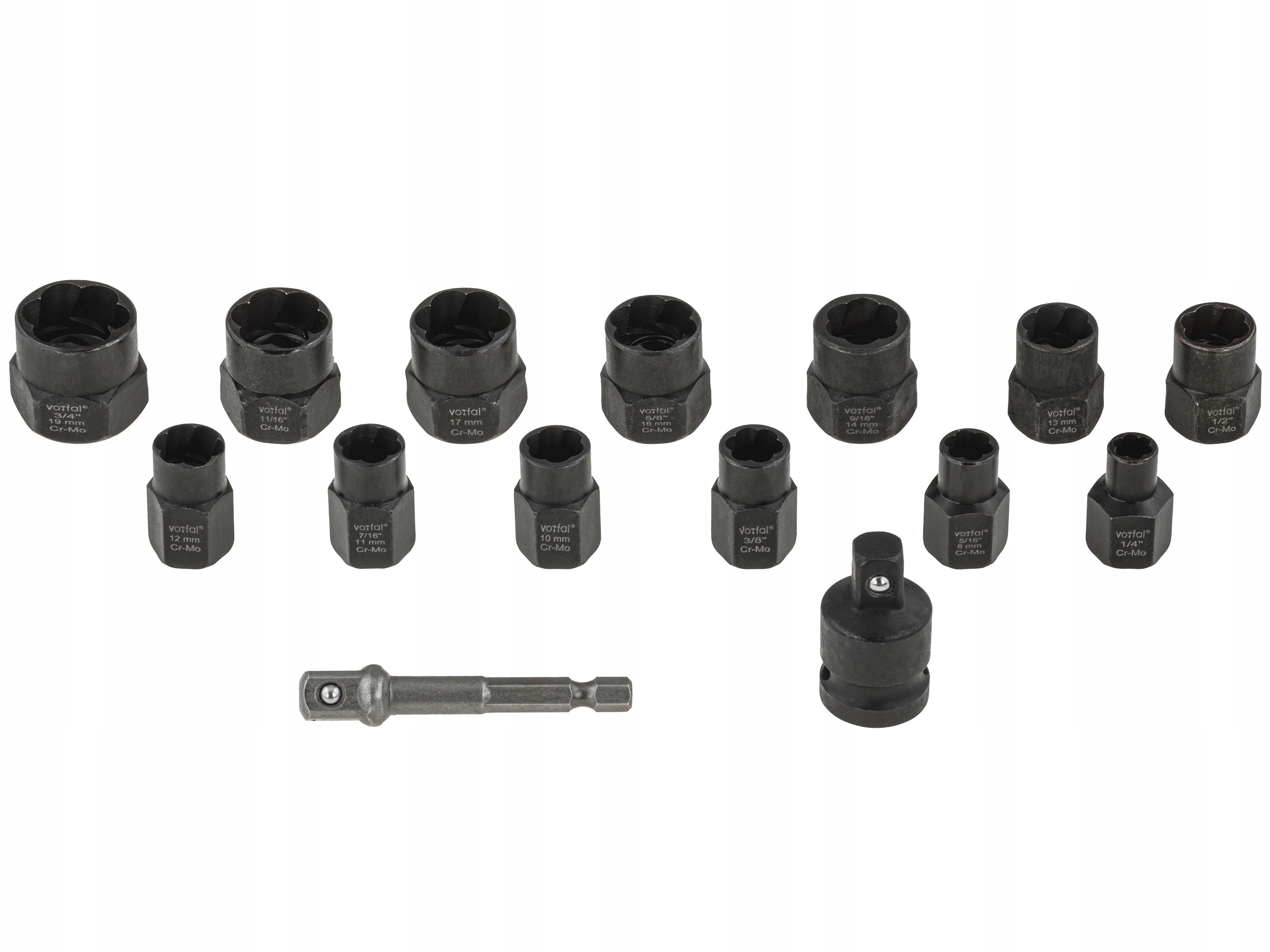 - 1/4 ", 5/16", 3/8 ", 1/2", 10 мм, 11 мм, 12 мм, 13 мм, 14 мм ,, 16 мм, 17 мм, 11/16 ", 19 мм