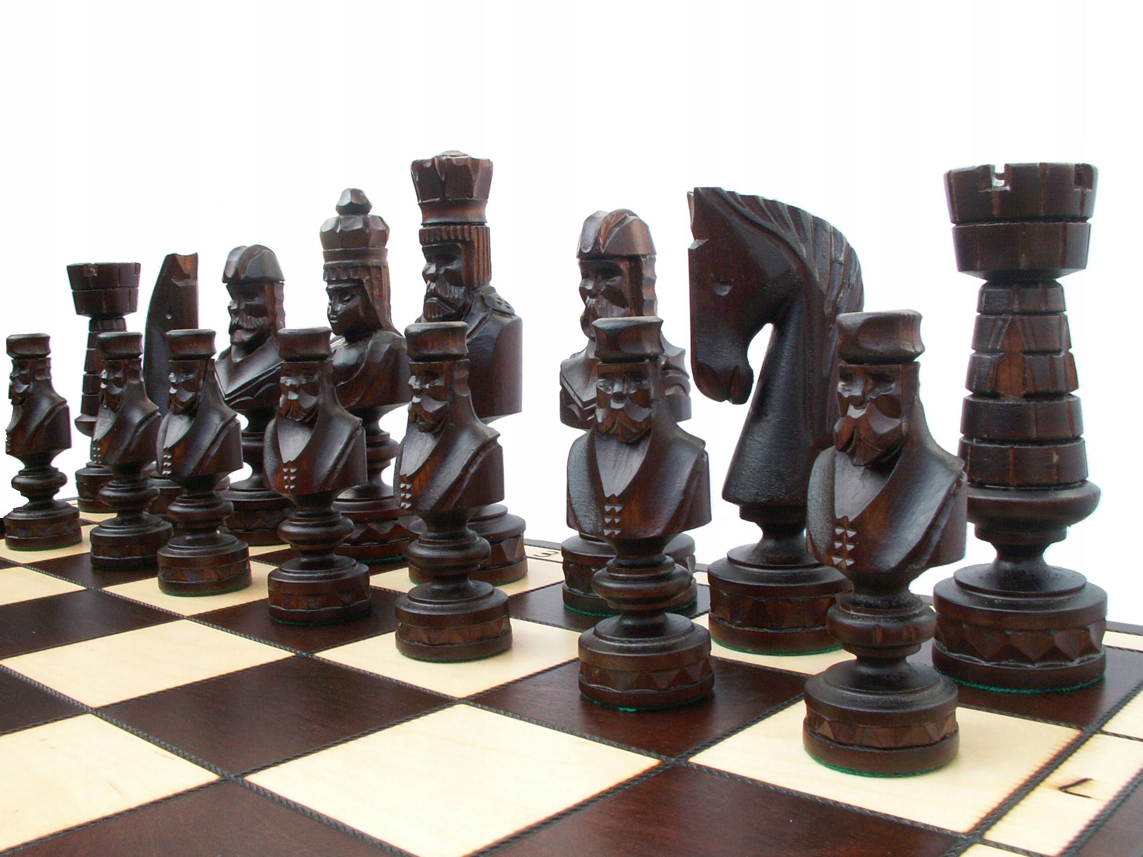 Різьблені дерев'яні шахові фігури 85х85