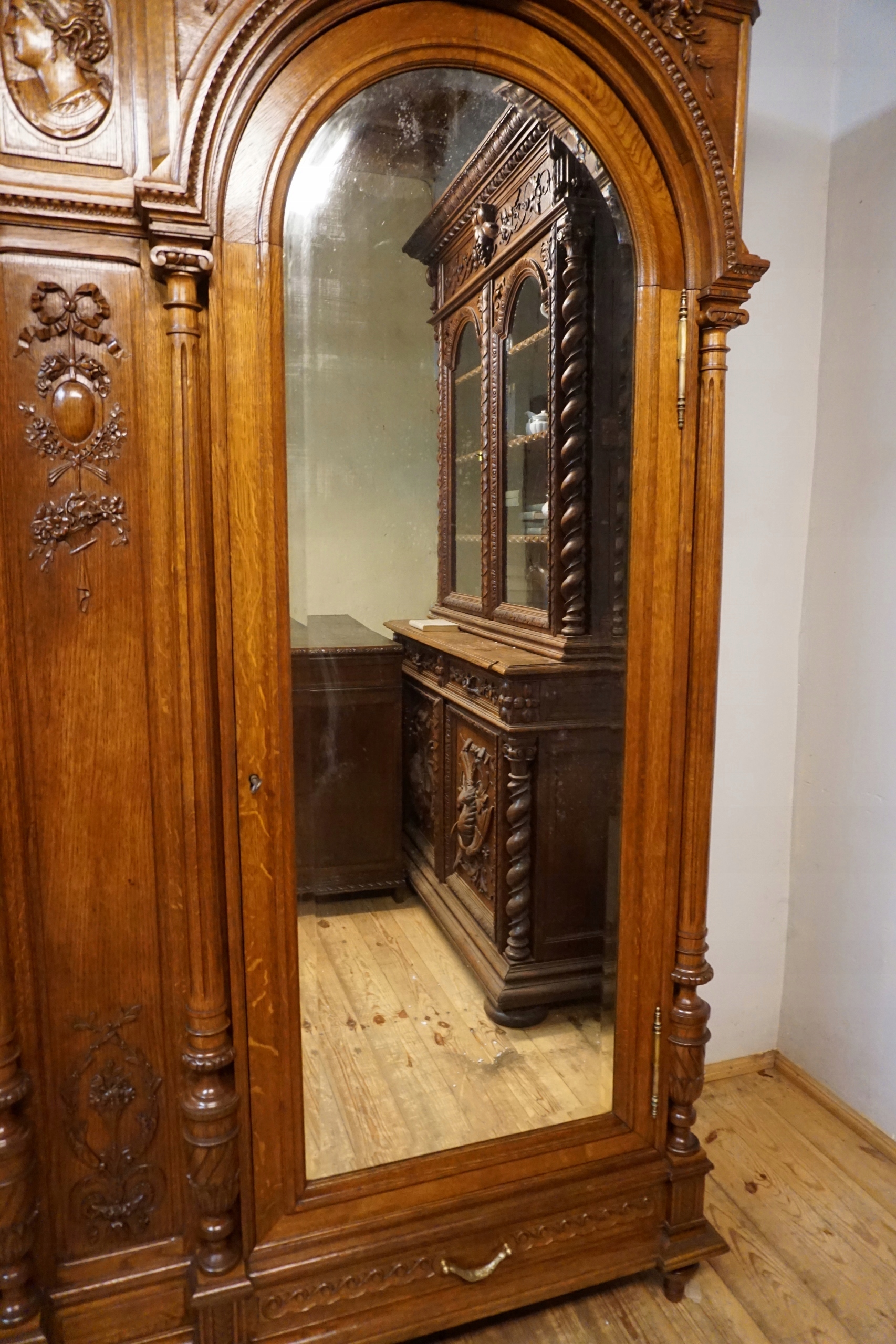 Різьблений палацовий гардероб з дзеркалами оригінальна Франція.