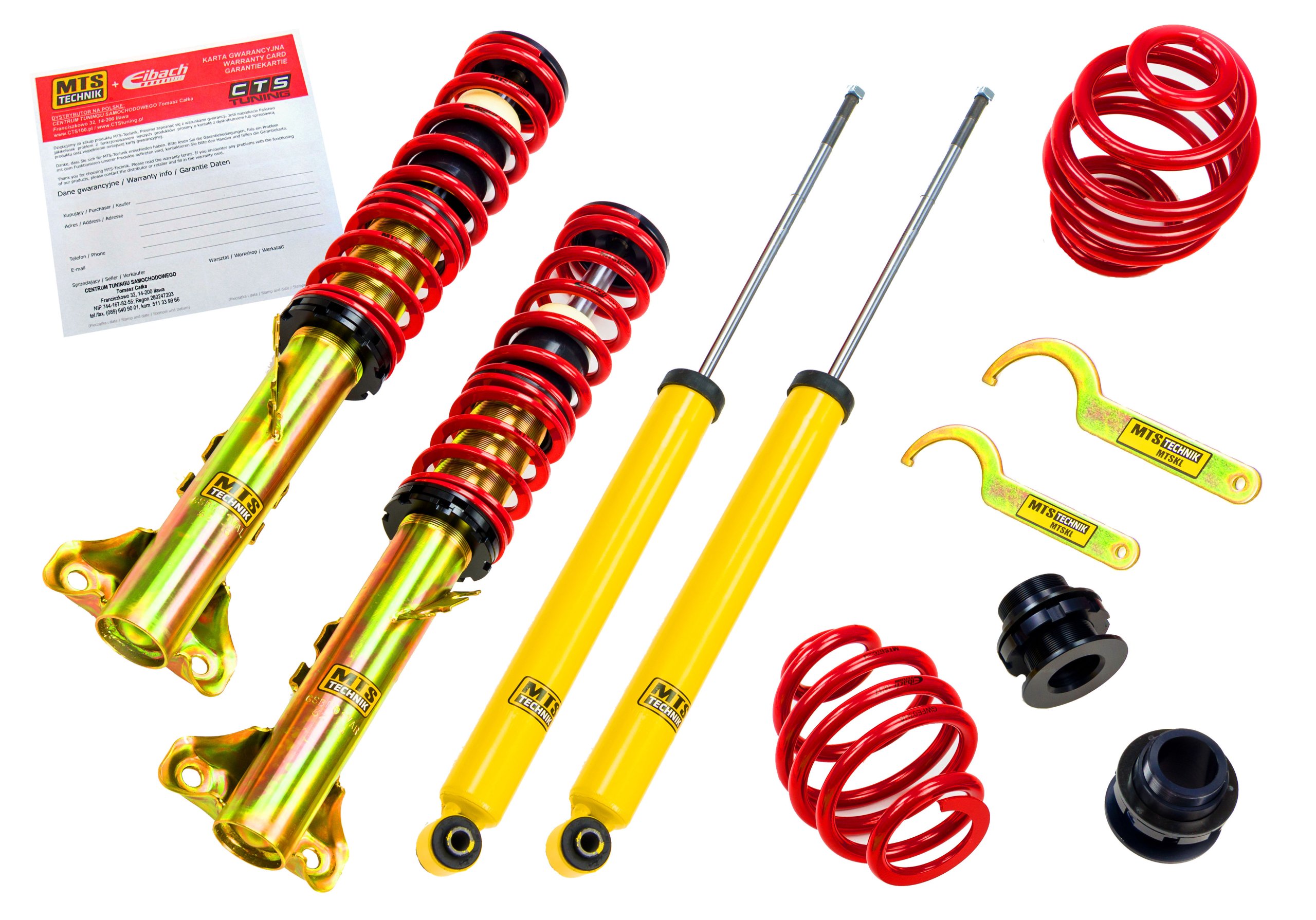 ОПИС: Високоякісна підвіска MTS-Technik + Eibach coilover, що зміцнює і знижує автомобіль, значно покращуючи ходові та візуальні властивості автомобіля. Передні та задні пружини розроблені та виготовлені німецькою компанією Eibach. BLACK GOLD EDITION - золото оцинкована підвіска з чорними гайками - характеризується унікальним зовнішнім виглядом, більшою твердістю, довговічністю та стійкістю до корозії. Продукт має дворічну гарантію без обмеження пробігу та був виготовлений компанією, сертифікованою ISO.