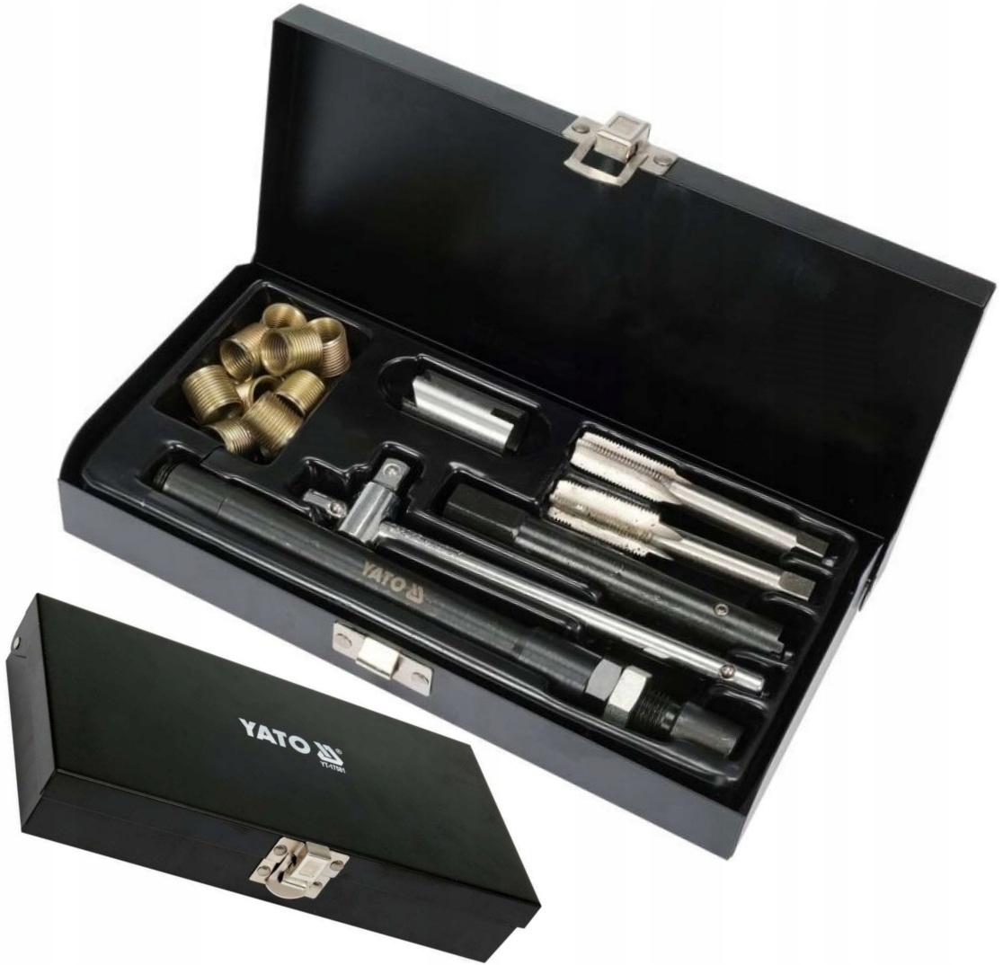 - Вміст набору: мітчик|втулка x20|тримач для мітчика та фрези|ручка| спеціальний штифт для встановлення ремонтних гільз у гнізда|шестигранний ключ