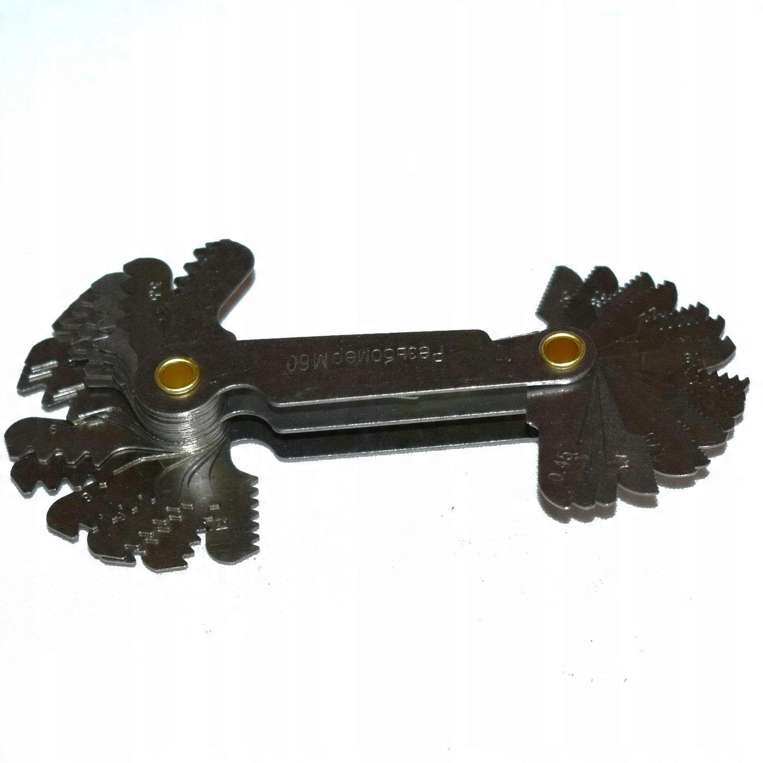 MWGA 60 -MWGA Threads - MWPA A 55 - це професійний інструмент для вимірювання, що дозволяє швидко та точно перевірити удар метрики (60 °) та дюйм (55 °). Оснащений 40 гребінцями, дозволяє точно відповідати гвинтовій нитці, як зовнішній, так і внутрішній. Необхідно в слюсарях, механічні та інструменти.