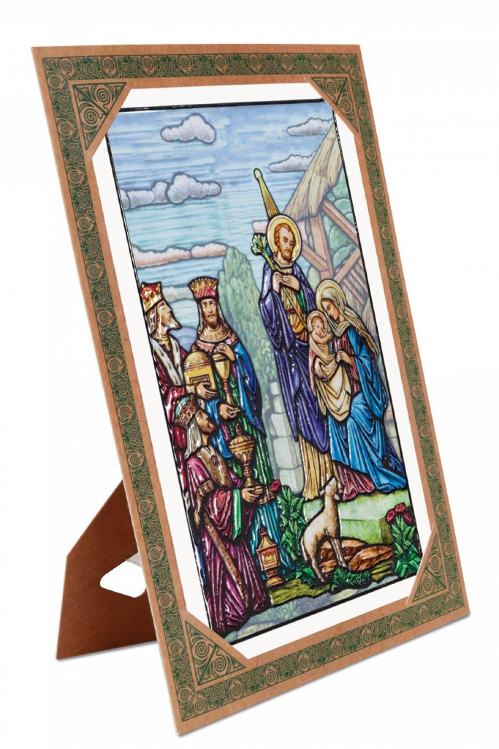 релігійна картина, яка представляє прекрасну різдвяну сцену у стилі, натхненному вітражам. Це відмінний вибір як як подарунок, так і прикраса будинку на святковий час. Продукт був зроблений з найвищою увагою до деталей, завдяки якому він вражає естетикою та довговічністю.