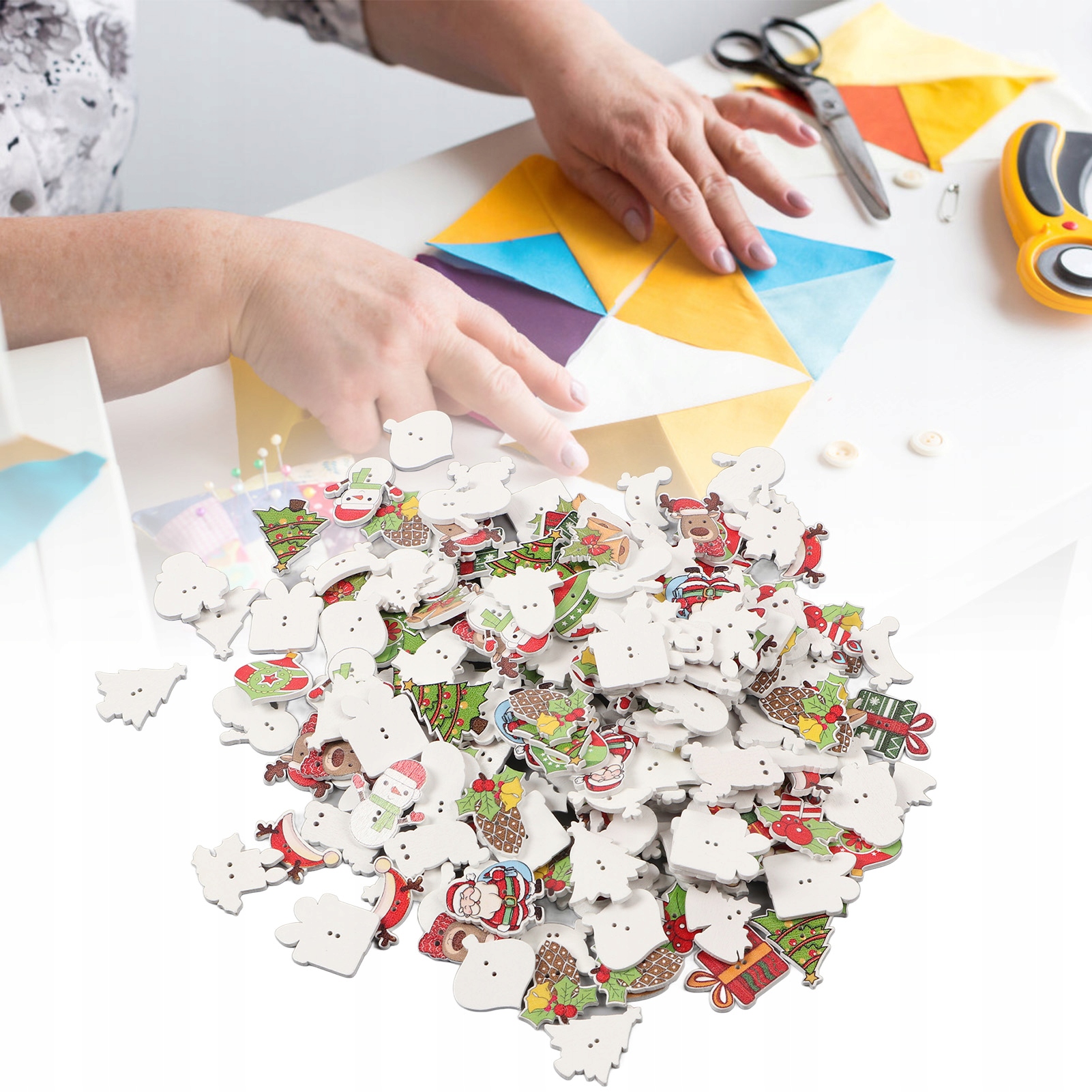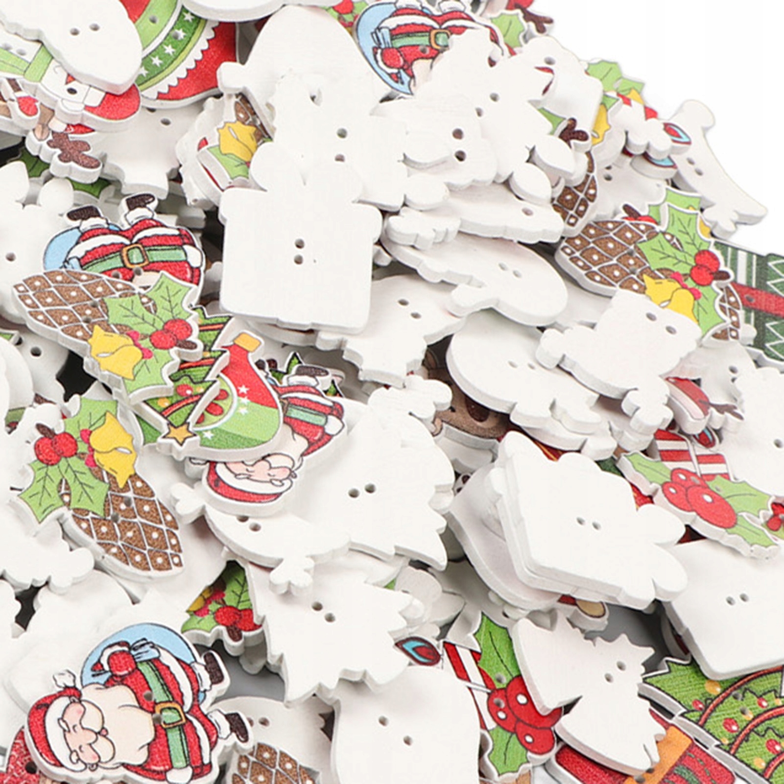 Різдвяні дерев'яні ґудзики змішаних стилів Декоративні різноманітні різдвяні ґудзики для ручного шиття Набір для в'язання, біла спинка, товщина 2,5 мм, 200 шт./уп.