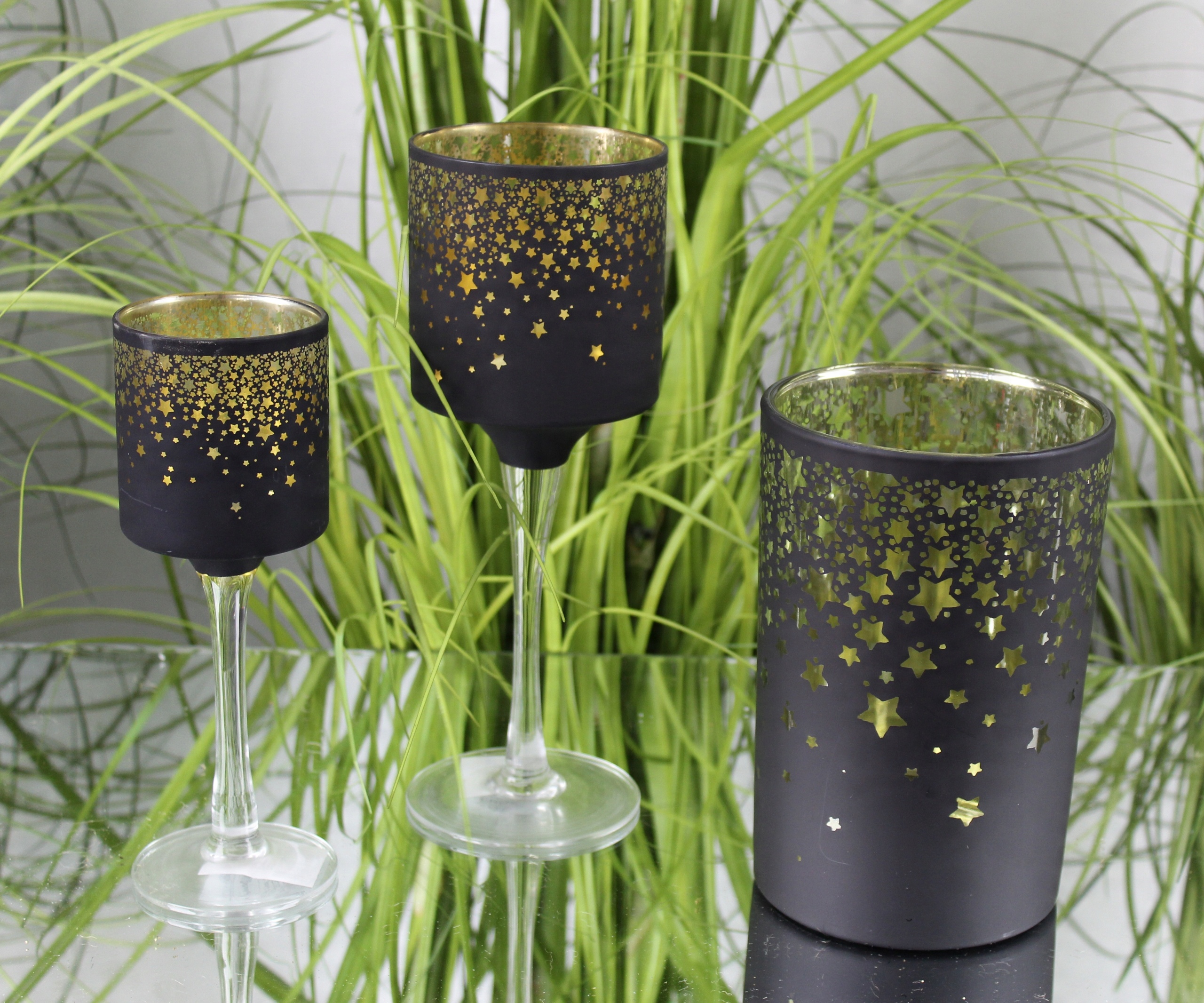 Чорна скляна чашка з зірками