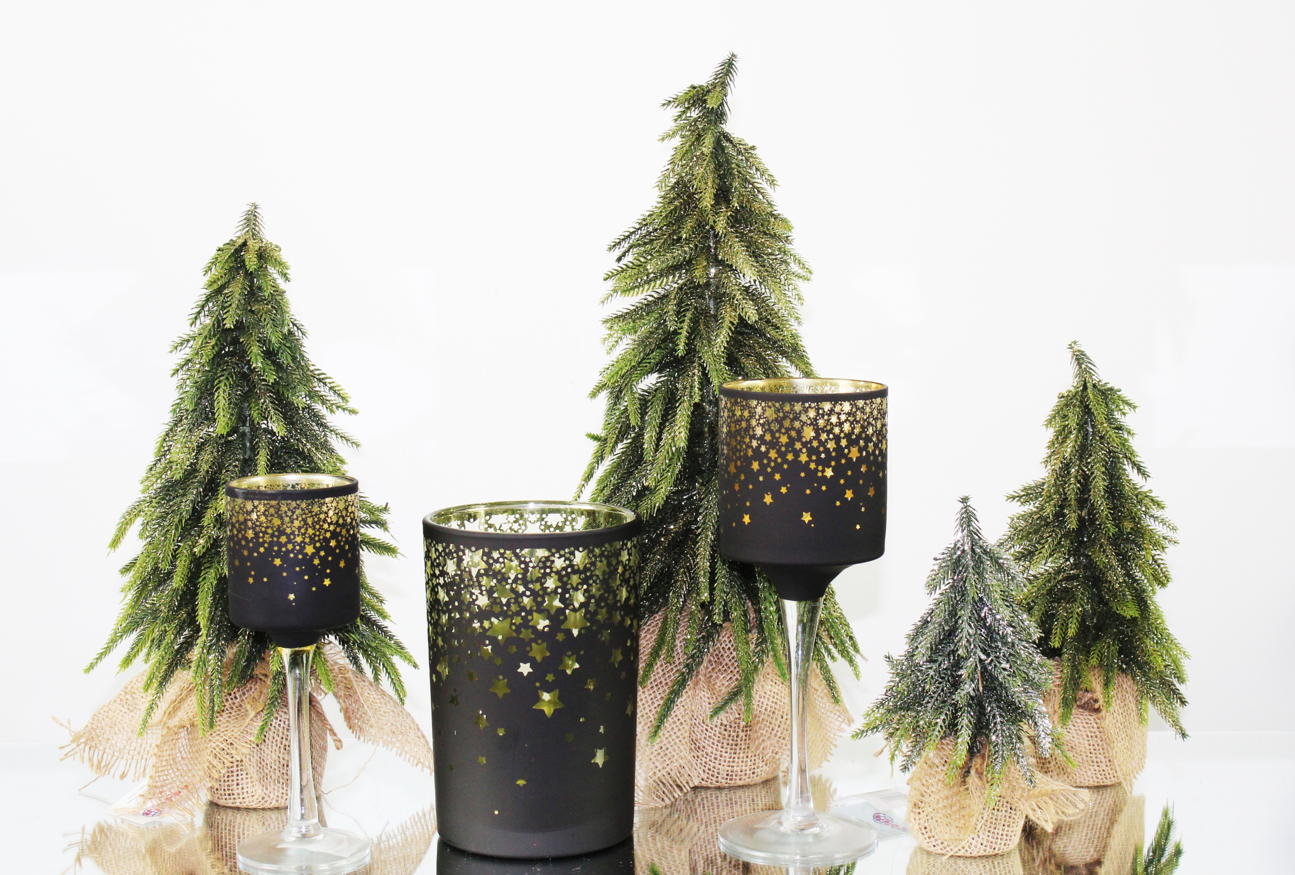 Різдвяна чашка скляна ліхтар Чорна свічник H25 дедодомі