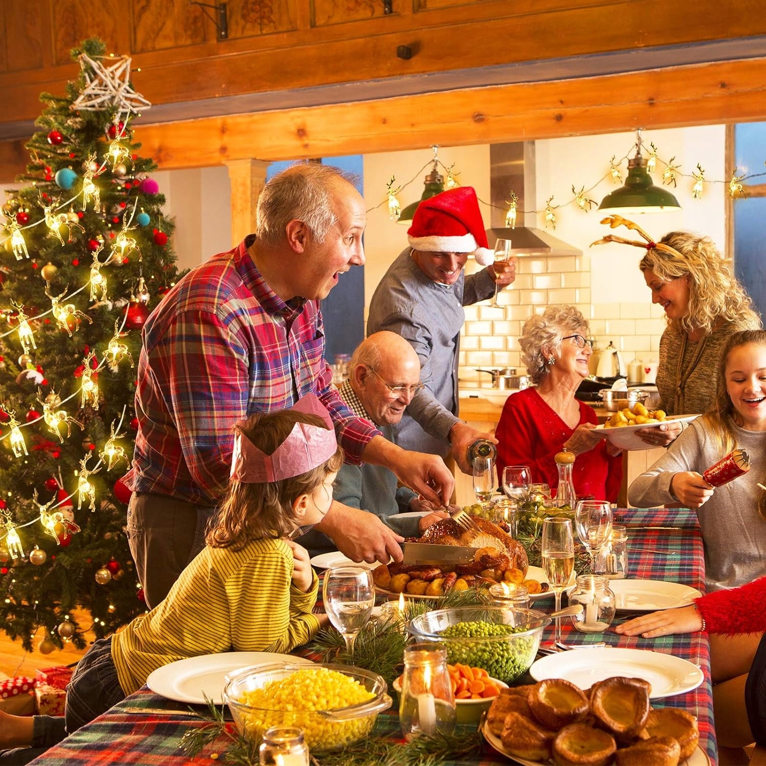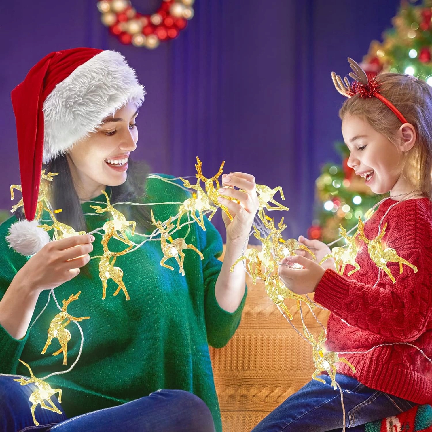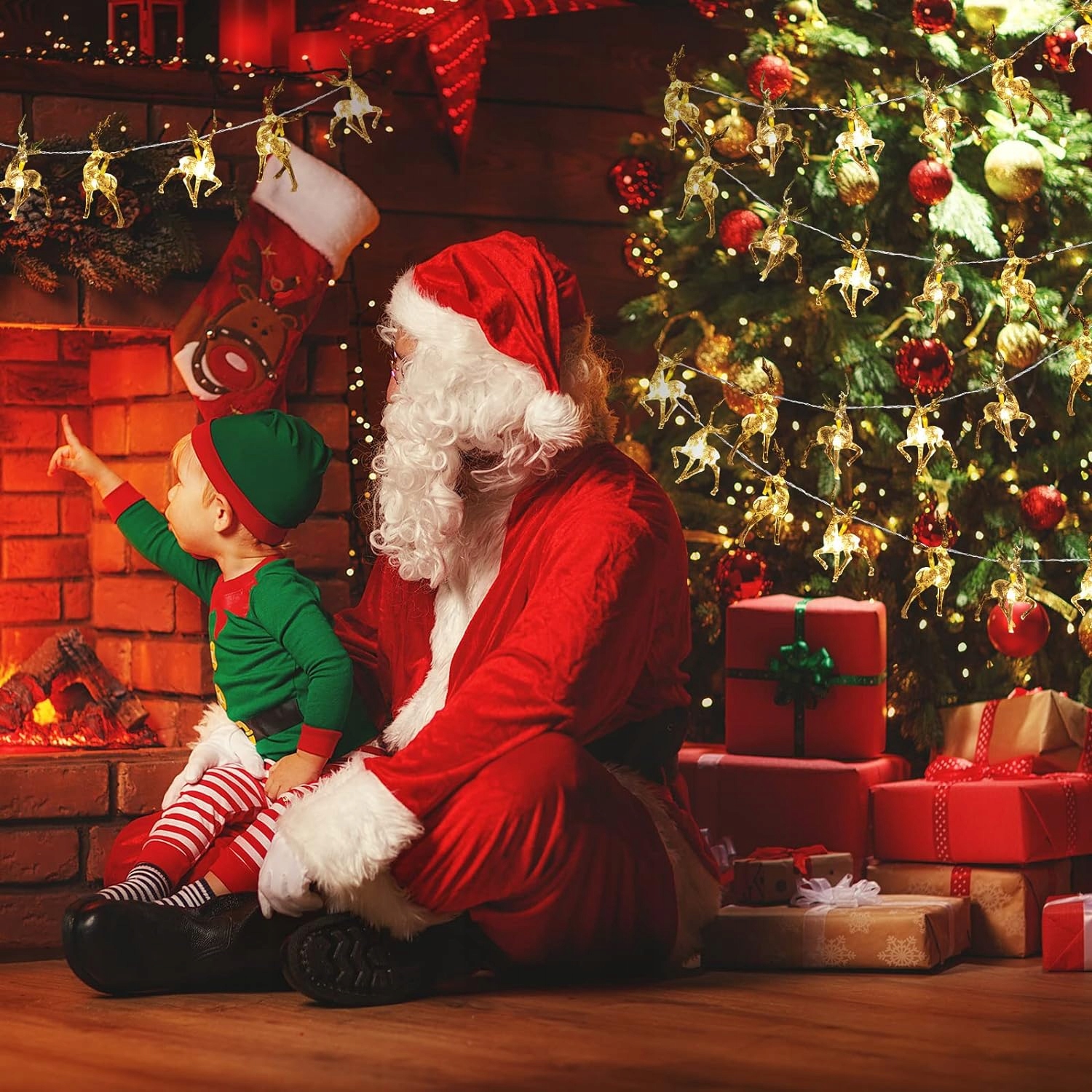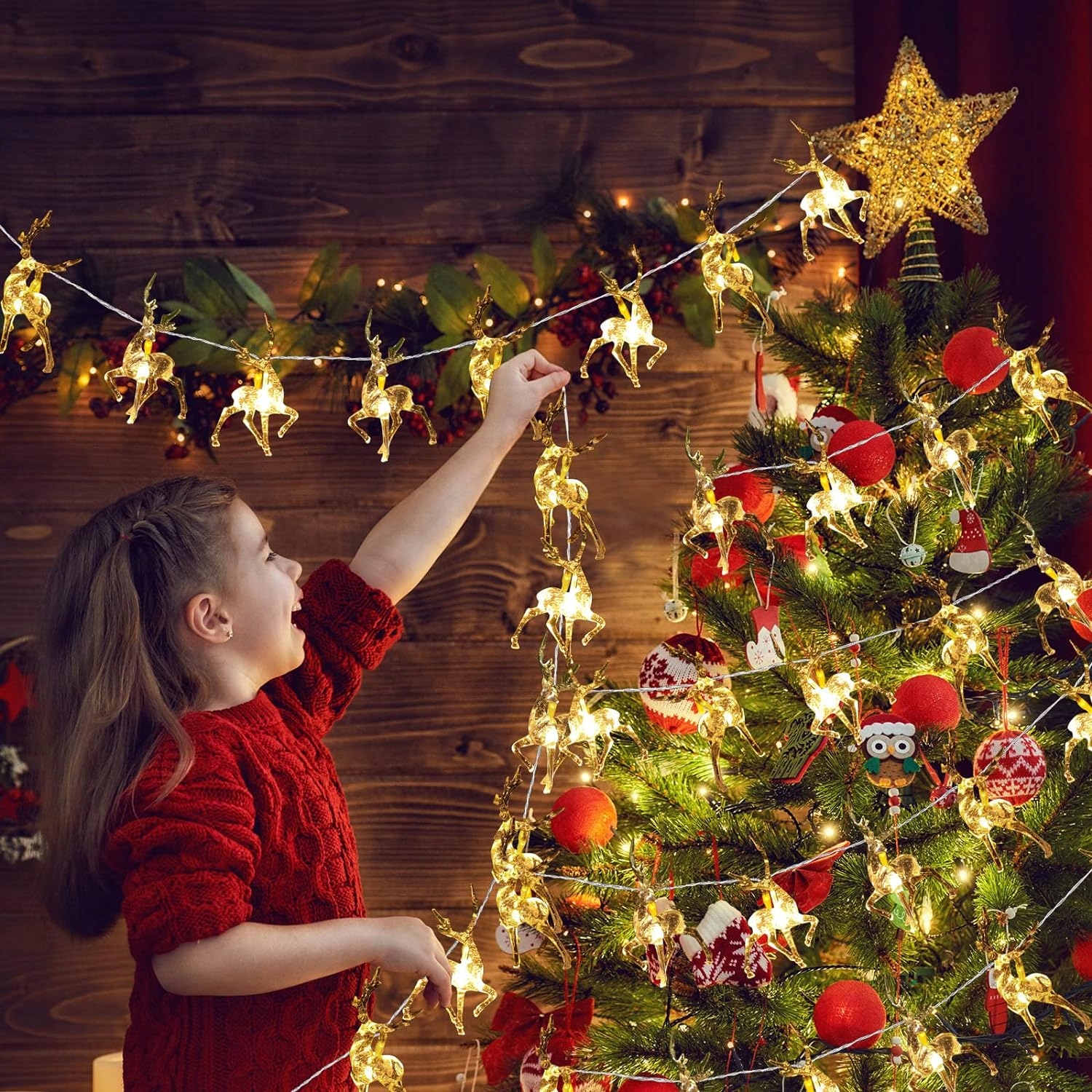 РІЗДВЯНА ГІРЛЯНДА, ОЛЕНИ, ЩО СВІТЯТЬСЯ, на СТОЛІ, ФЕНЕЧКИ, Ялинкові вогники