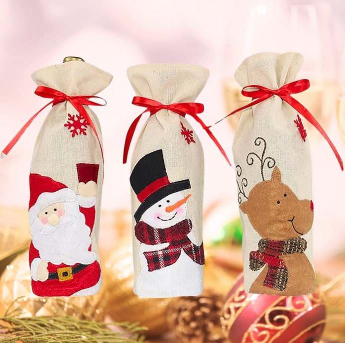 РІЗДВЯНИЙ ЧОХОЛ ДЛЯ ПЛЯШКИ ДЖУТОВИЙ МІШОК ДЛЯ СВЯТКОВОГО ДЕКОРАЦІЇ ВИНА