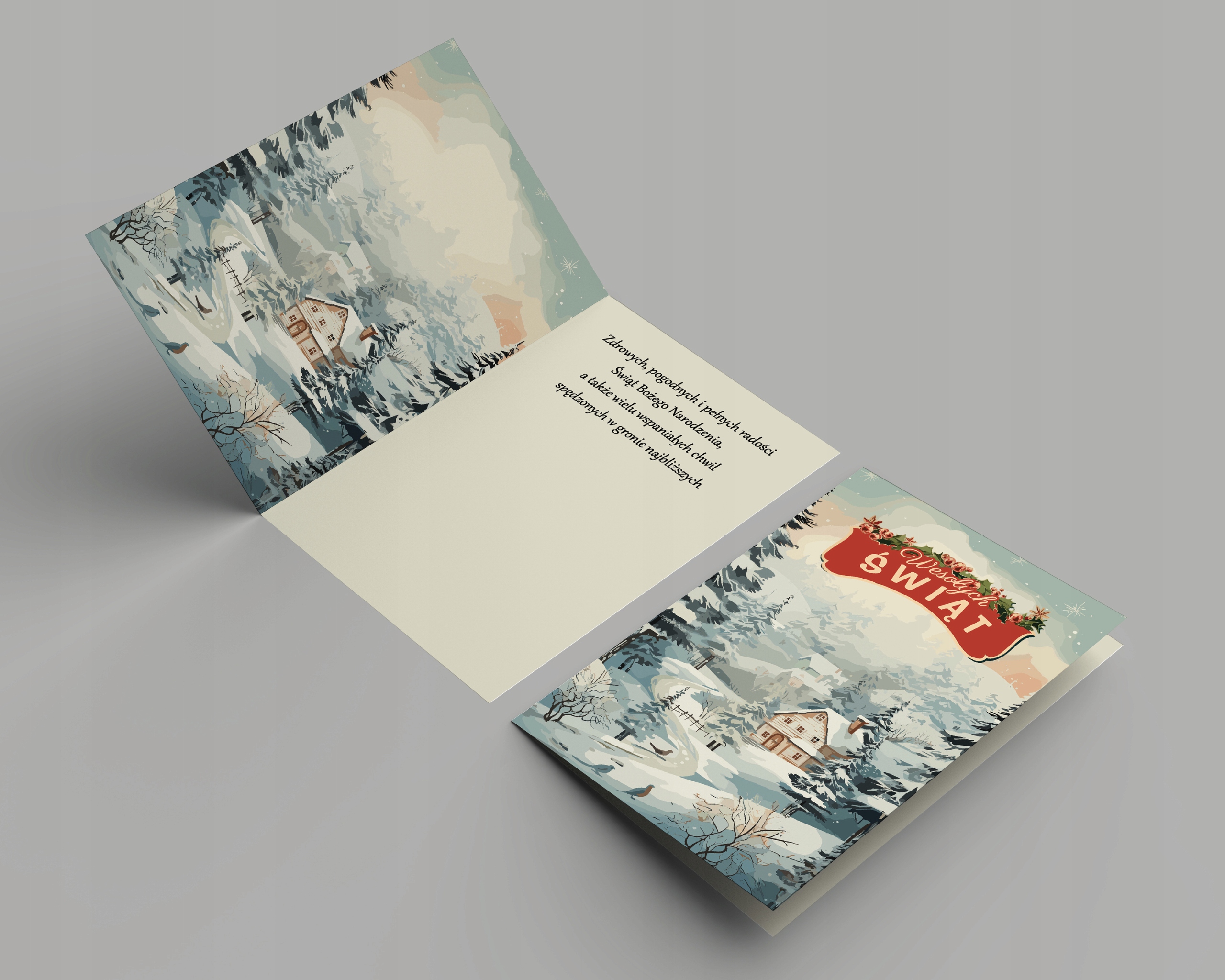 Різдвяна листівка P06 - Ретро -будинок - з текстом - Різдво +конверт