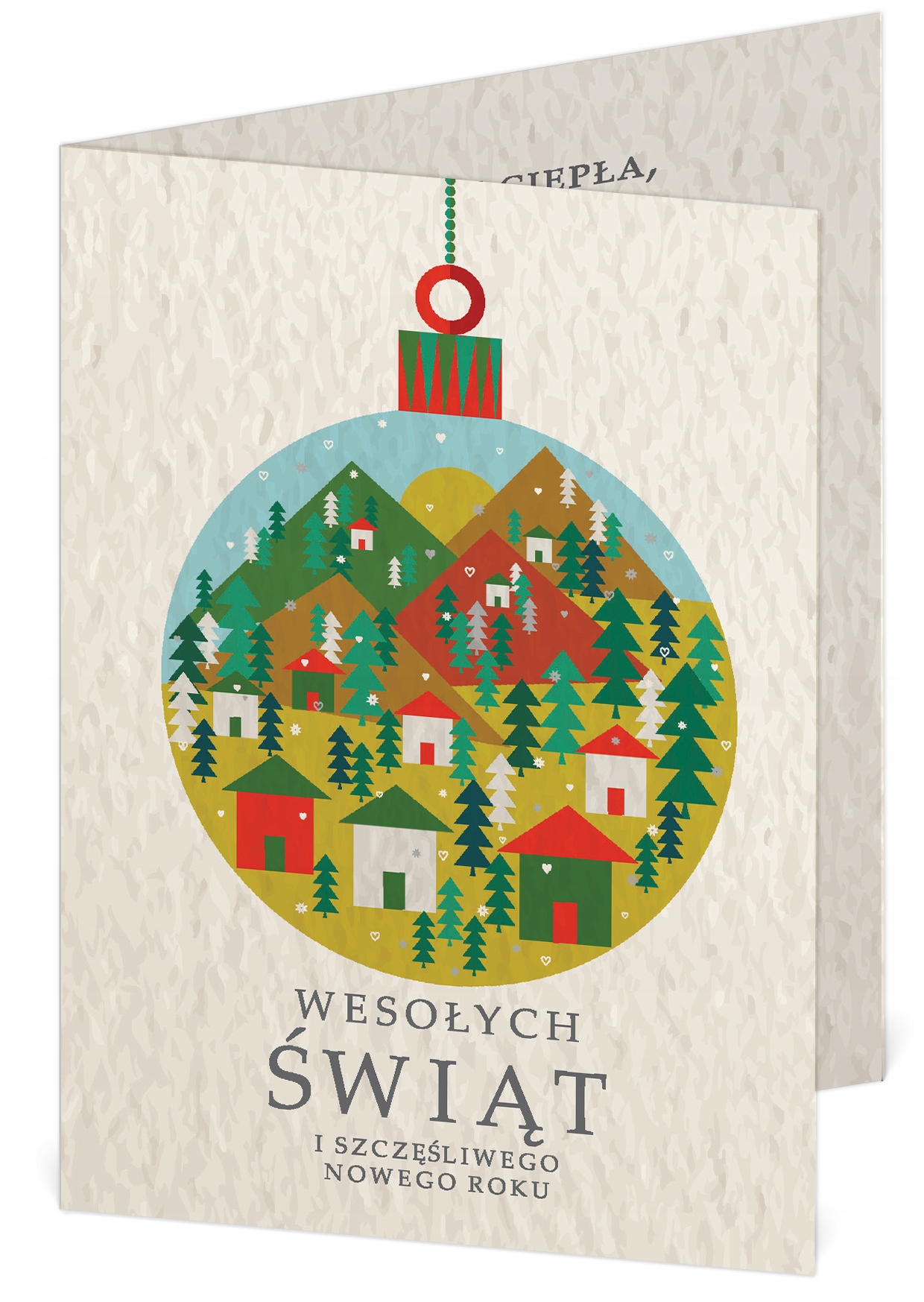 Різдвяна листівка P07 - Баубл з будинками - з текстом +конверт