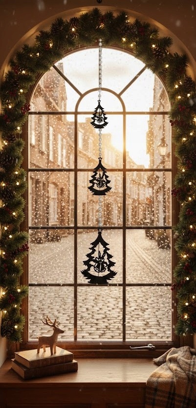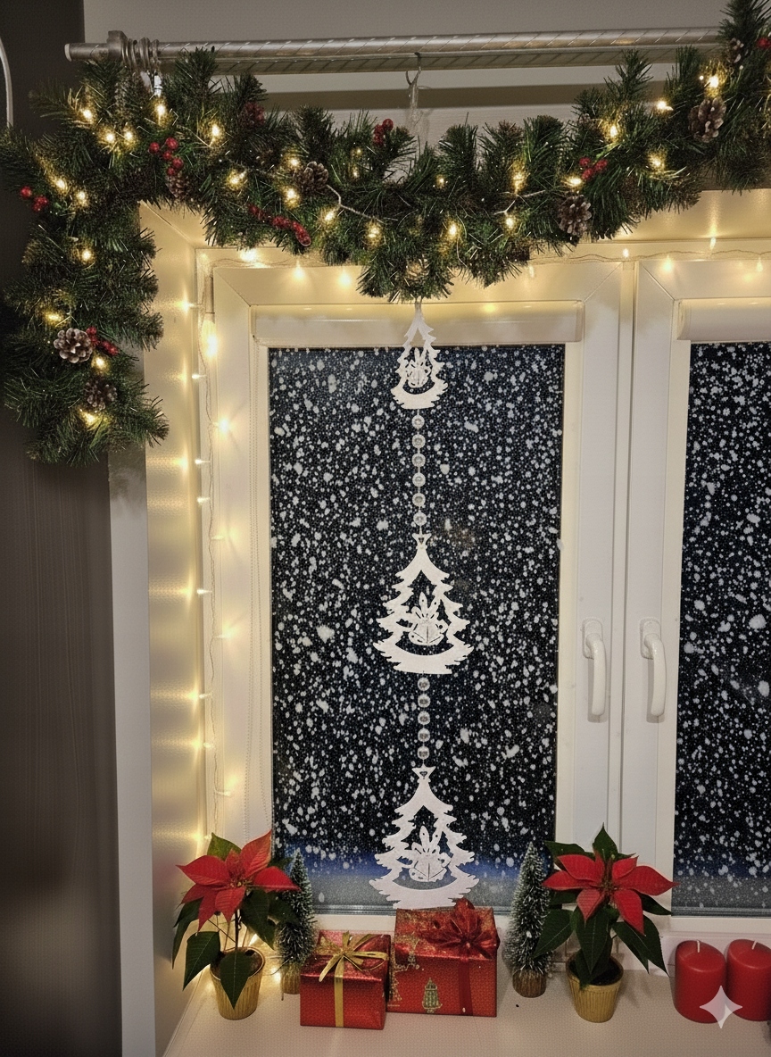 Новорічна підвіска GIRLAND ялинка X 3 КОЛЬОР чорний, білий в подарунок