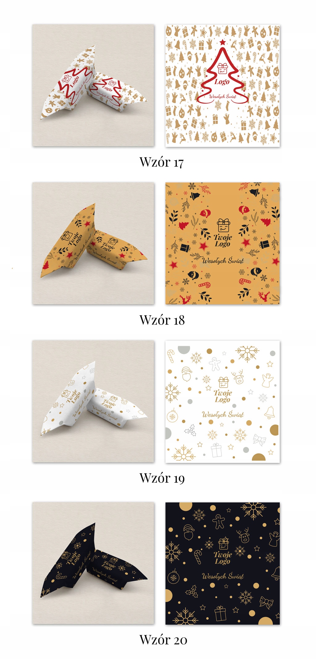 Кожна помадка загорнута в красивий папір із різдвяним мотивом. Ви можете додати власний напис, логотип або побажання, створюючи унікальний персоналізований подарунок, який порадує кожного одержувача.