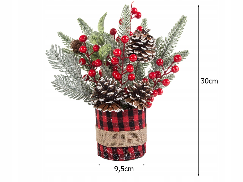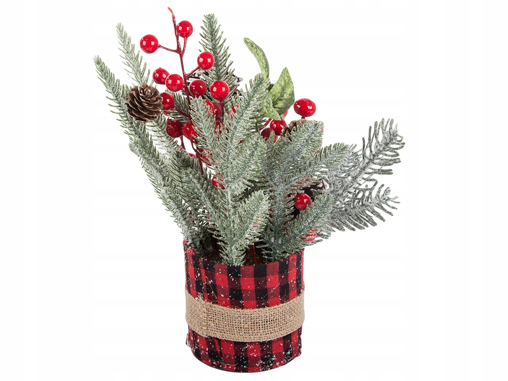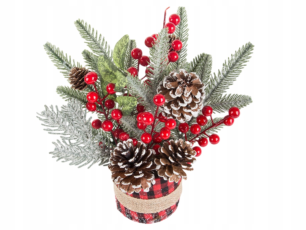 Головний убір складається з ефективних гілочок ялини, покритої делікатним шахрайством, , що нагадує зимовий ліс. червоні ягоди та природні конуси вводять колір та витонченість, а стильна упаковка труб з джутовим поясом дає весь сільський шарм . Усі елементи міцно вбудовані, завдяки якому головний убір виглядає красиво і постійно протягом усього сезону свят.
