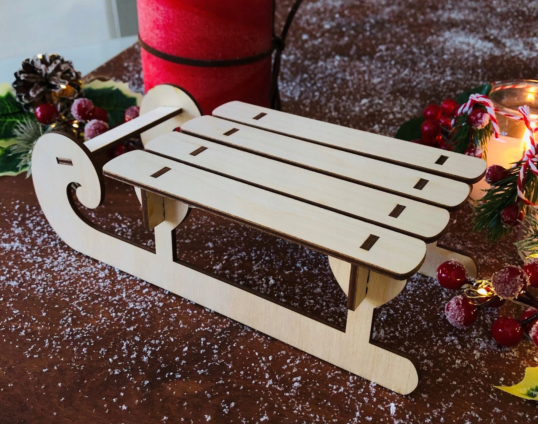 Різдвяна прикраса велика дерев'яна фігурка саней