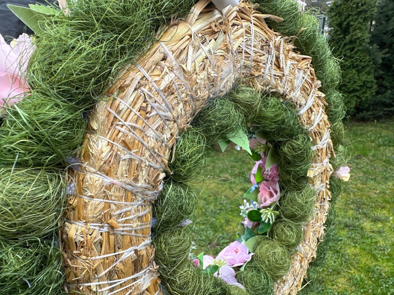 Діаметр вінка становить прибл. 37 см см, вага прибл. 0,6 кг. Солом'яна основа міцна та легка, а більшість прикрас - міцні, штучні елементи, які не відвалюються. При правильному зберіганні (сухий, в ящику) вінком можна буде насолоджуватися багато свят.