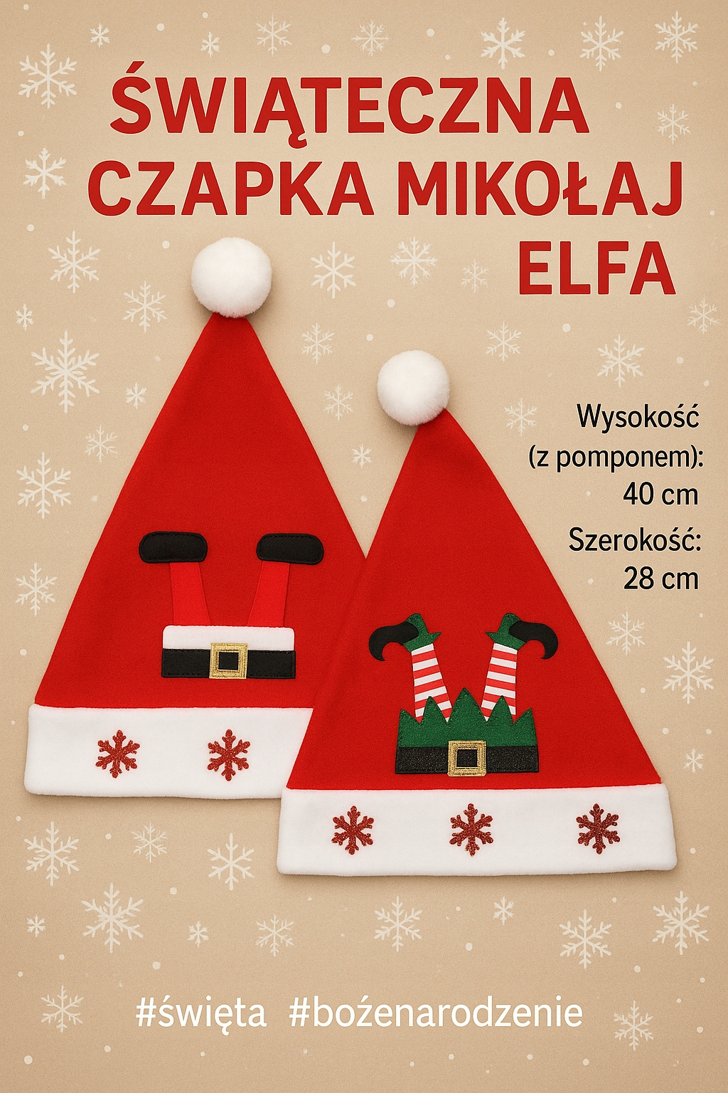 РІЗДВЯНА ШАПКА САНТИ/ЕЛЬФА, ПОДАРУНОК ДІДУ МОРУ - 2 види