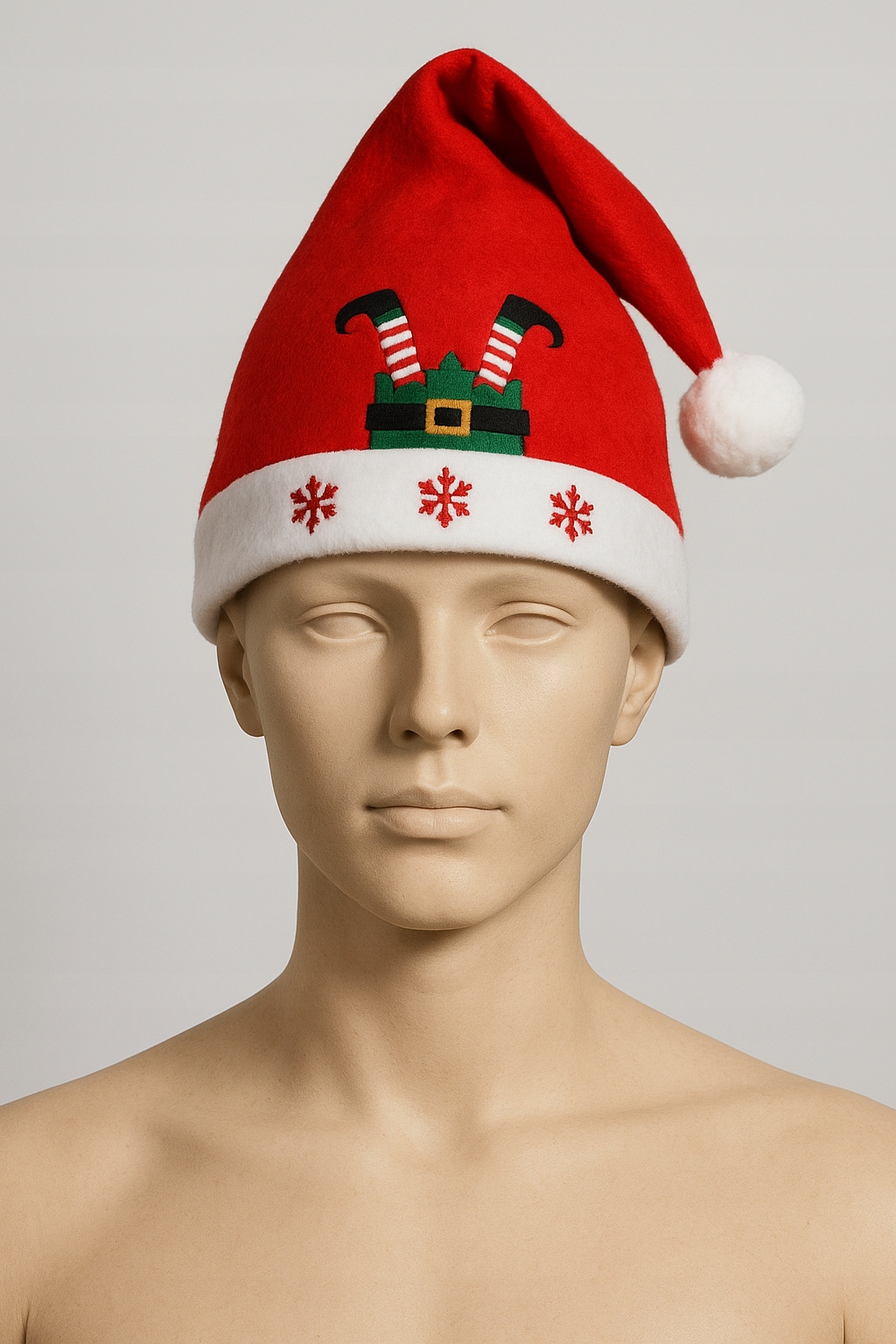 Різдвяний капелюх Санти/Ельфа - з прикрасами та помпоном!