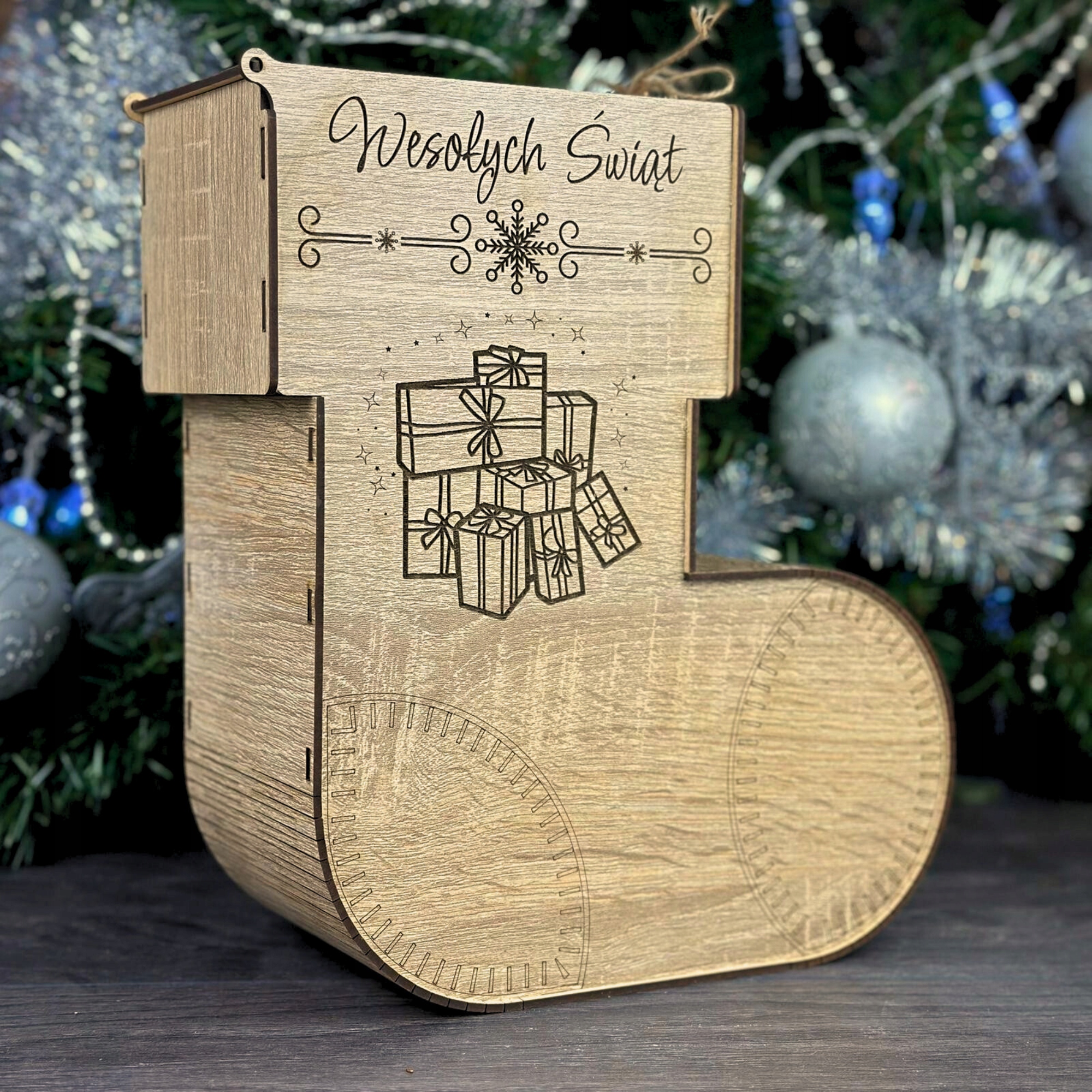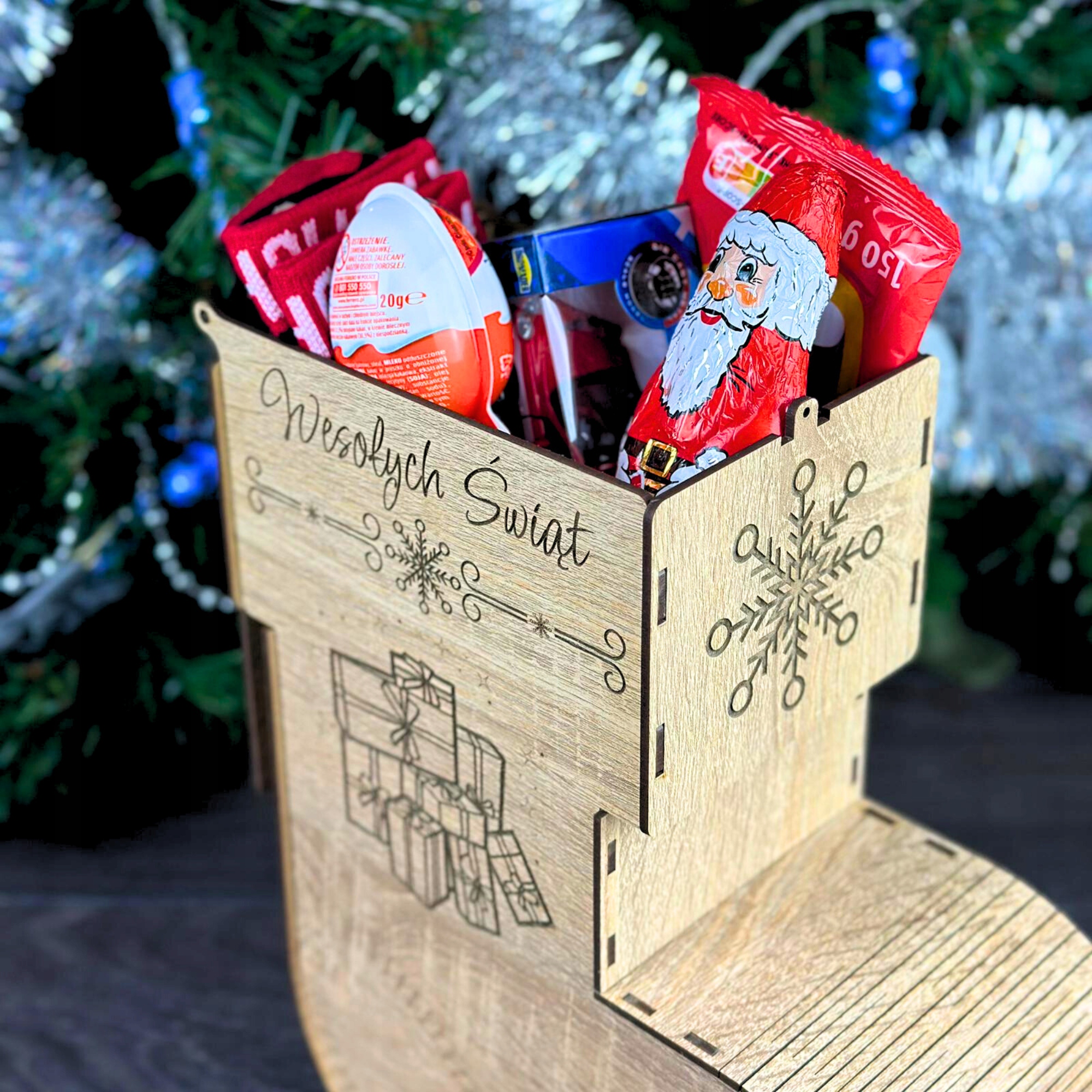 ДЕРЕВ'ЯНИЙ НОСОК ДЛЯ ПОДАРУНКІВ ТА СОЛОДОЩІВ