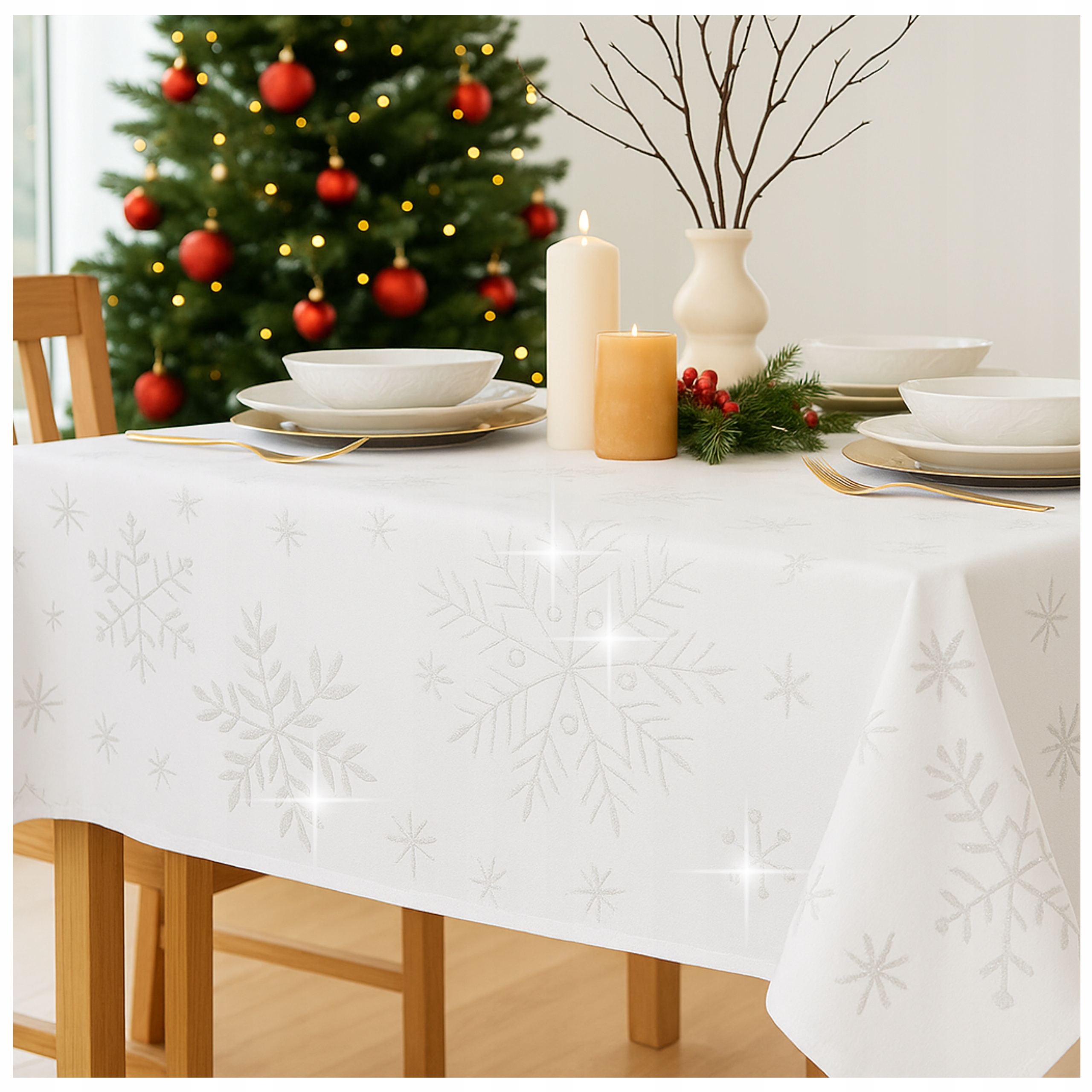 Привнесіть у свій дім неповторну, чарівну атмосферу Різдва завдяки білосніжній скатертині з витончена ЗОЛОТА вишивка сніжинки. Цей надзвичайно елегантний та естетичний аксесуар надасть неповторного характеру кожному Святвечірньому вечору та святковій зустрічі за столом.