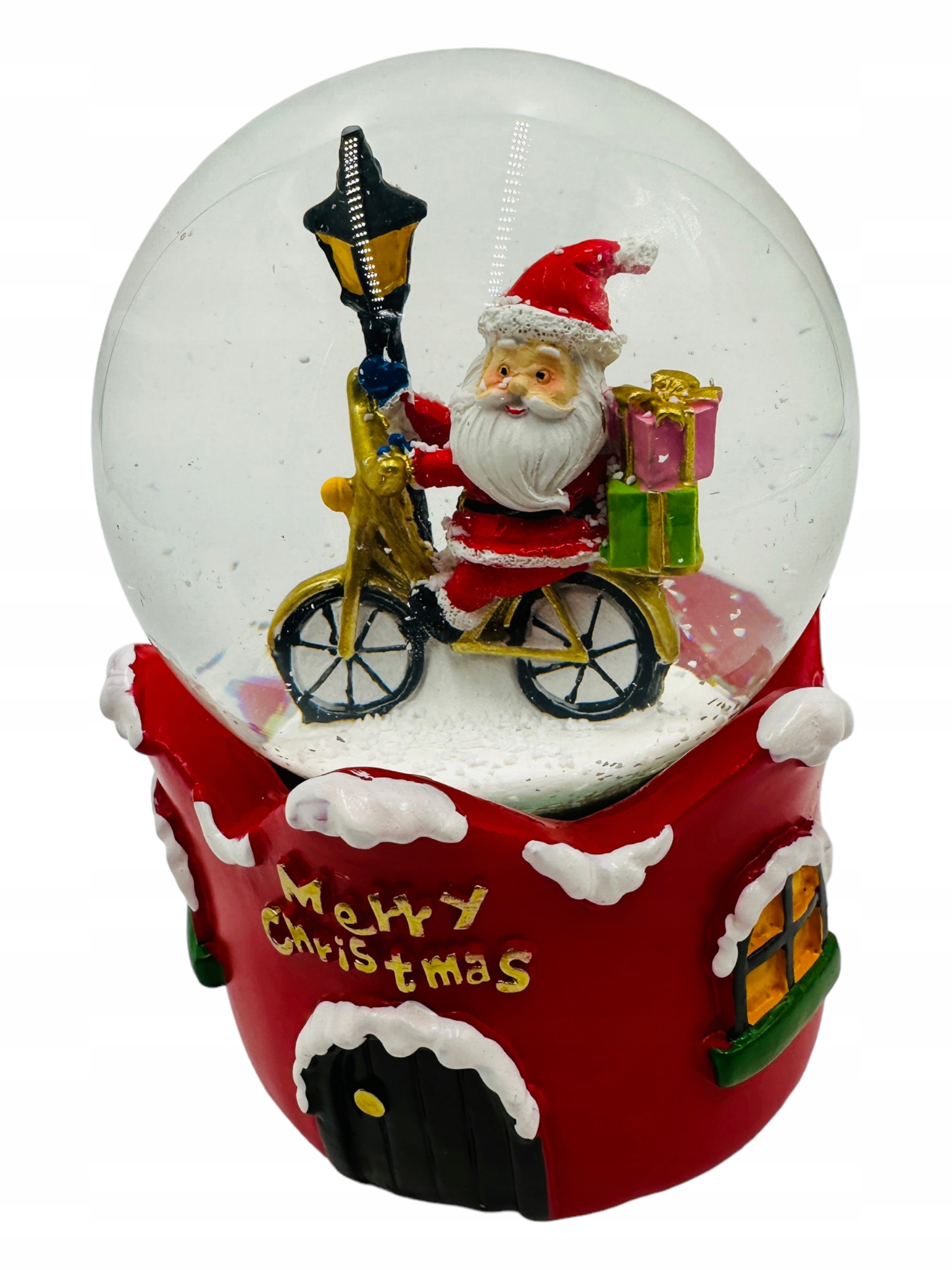 Різдвяна снігова куля Дід Мороз на велосипеді Сніжна музична скринька XL