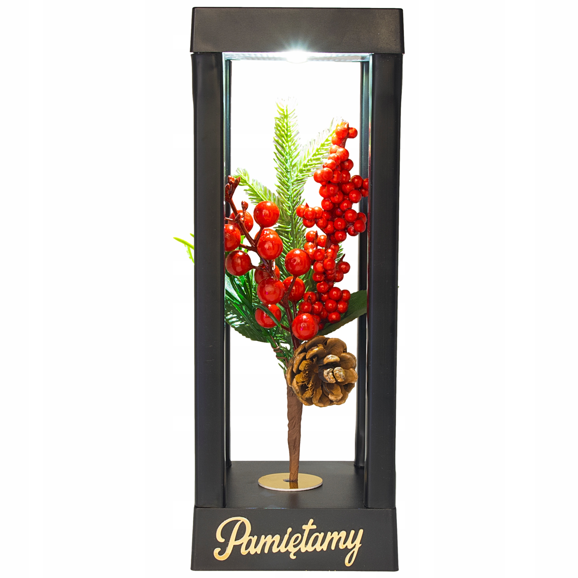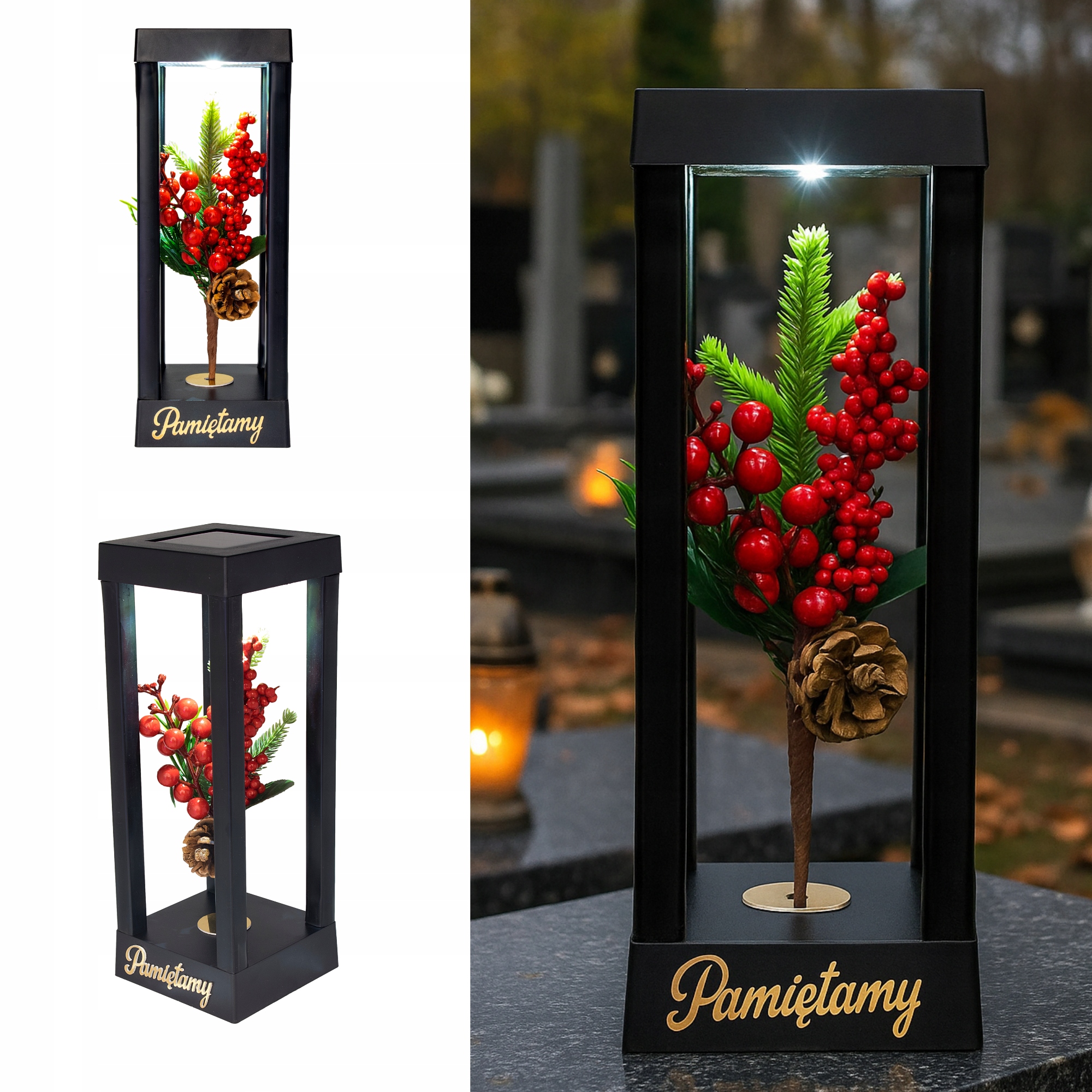 - Красивий Різдвяний сонячний ліхтарик - це унікальна прикраса, яка створює чарівну різдвяну атмосферу на могилі близької людини. Всередині ліхтаря розташована гілка ялини, прикрашена ягодами червоного глоду та горобини, зелене листя та соснова шишка, що створює елегантну природну композицію.