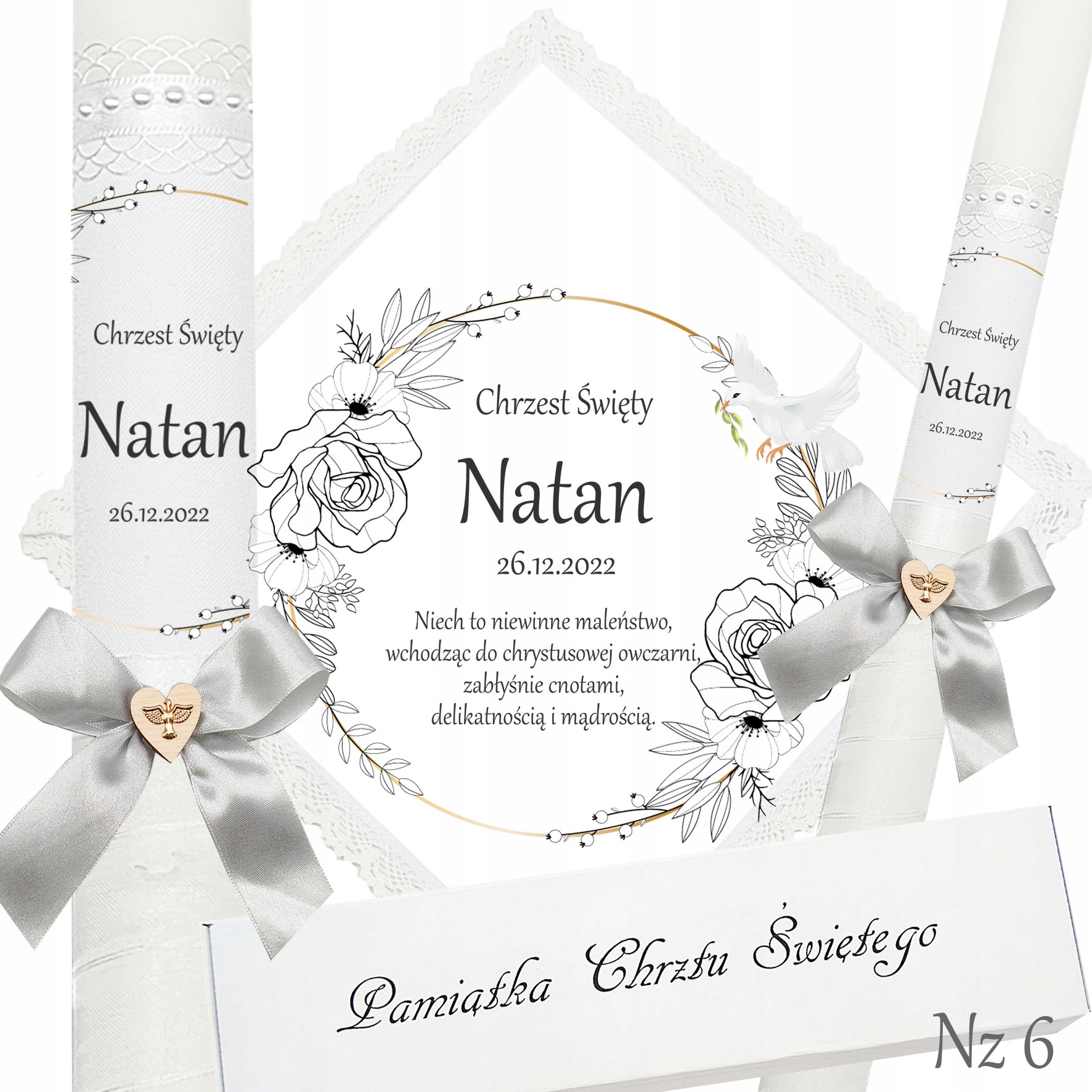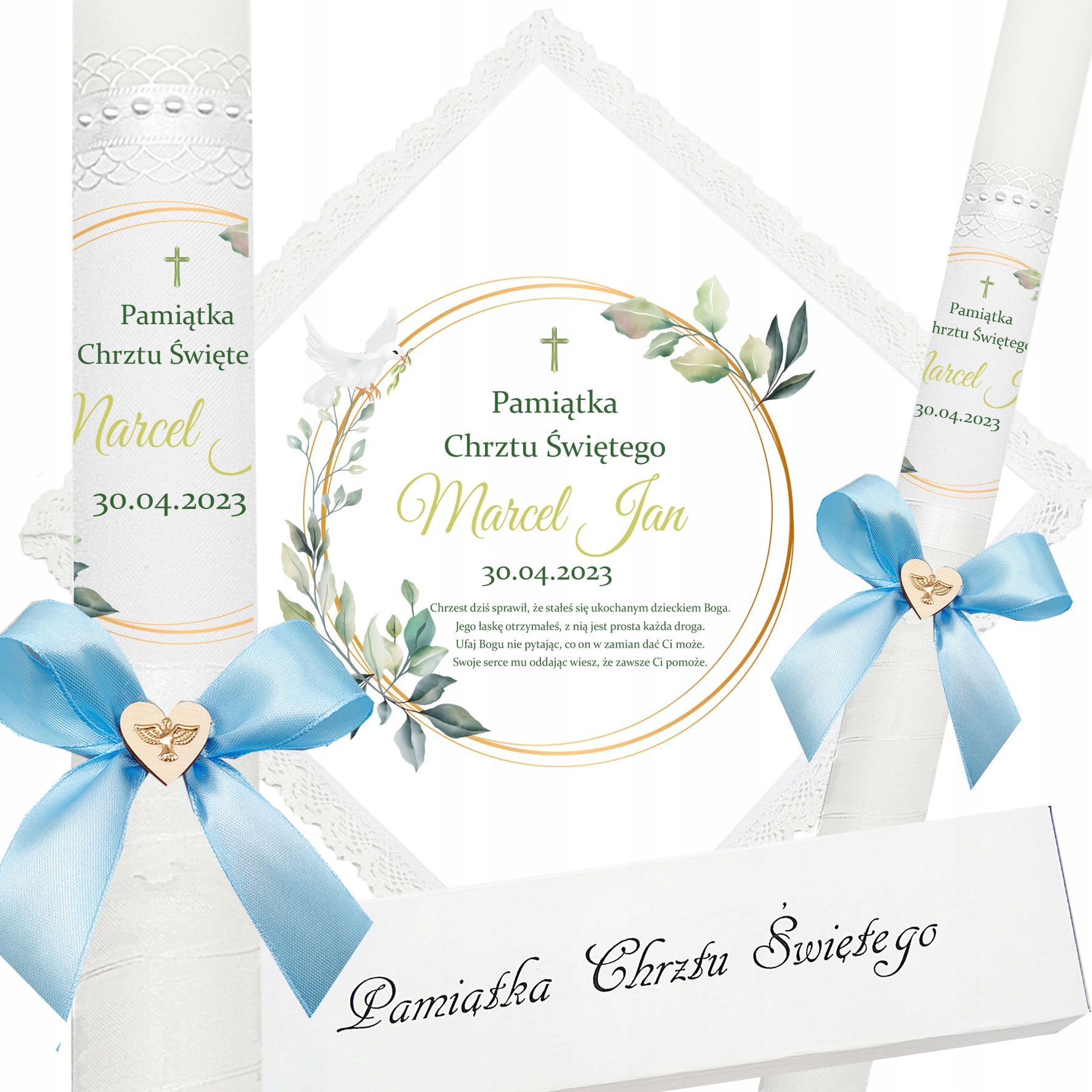 Представляємо надзвичайний набір для хрещення, що складається з ризи та свічки, ідеальний вибір для батьків які хочуть відсвяткувати цей особливий день елегантно та незабутньо. Свічка прикрашена білою шифоновою стрічкою, що додає їй неповторний характер і шарм. Верх свічки прикрашений атласним мереживом і білими перлами, що надає їй елегантності та шику. Лук з дерев'яним серцем і металевою золотою емблемою Святого Духа. додає чарівності та сентиментальності. Все було запаковано в декоративну коробку, яка дозволяє зберігати ці незвичайні сувеніри.