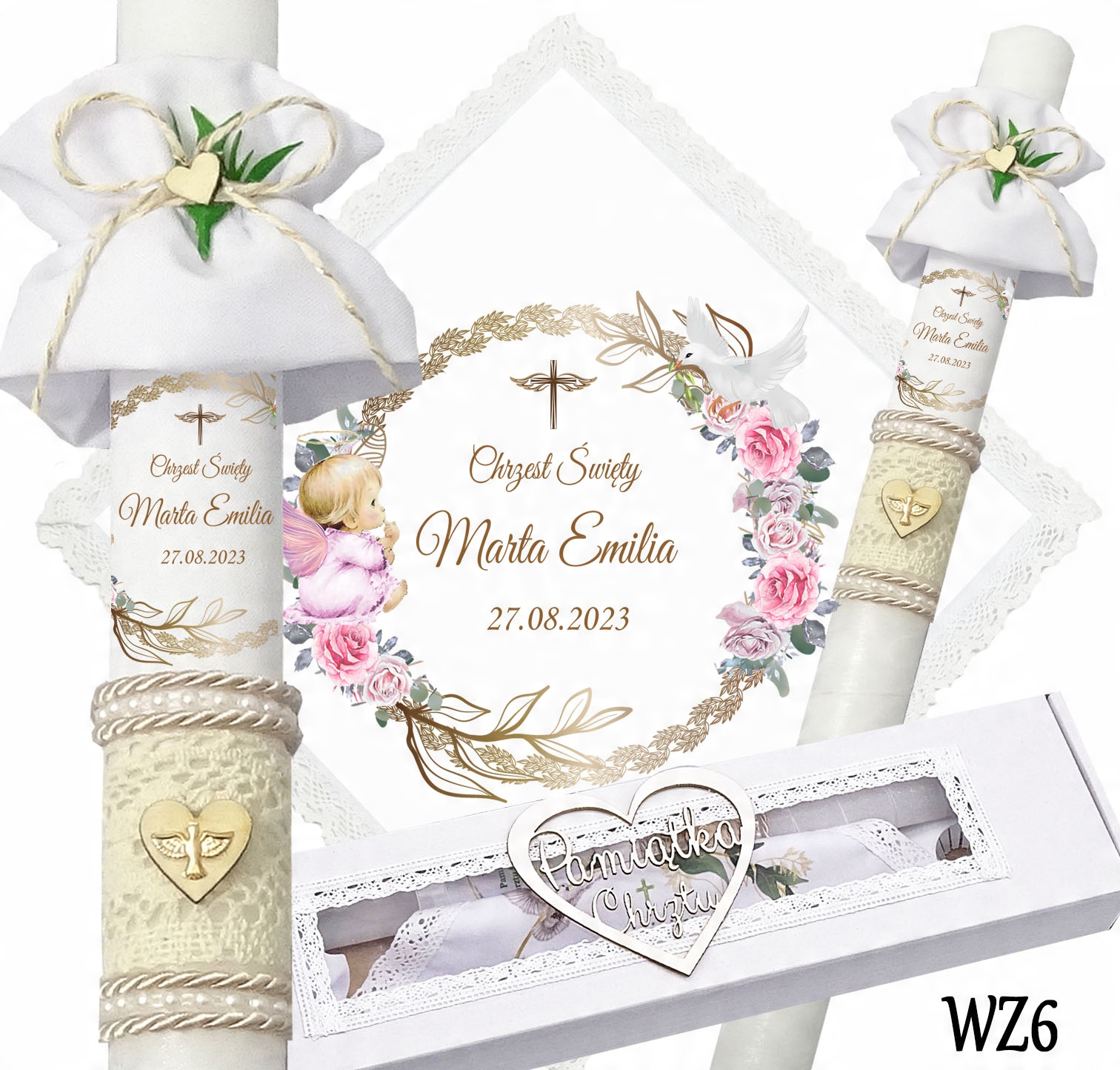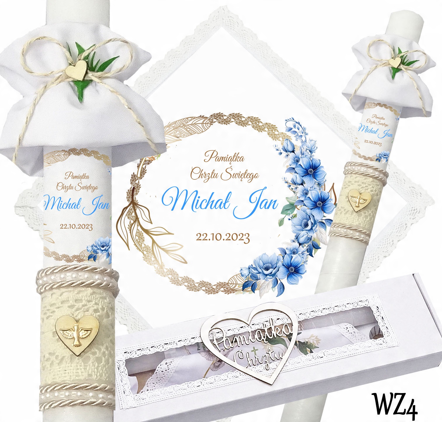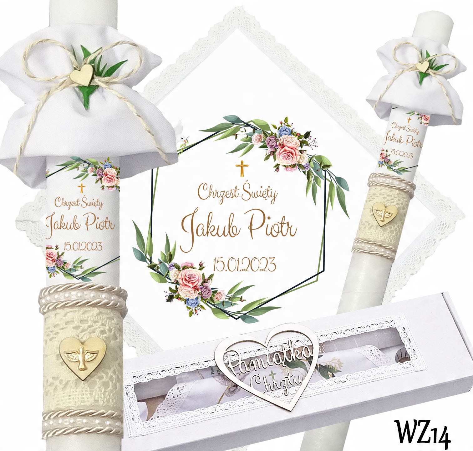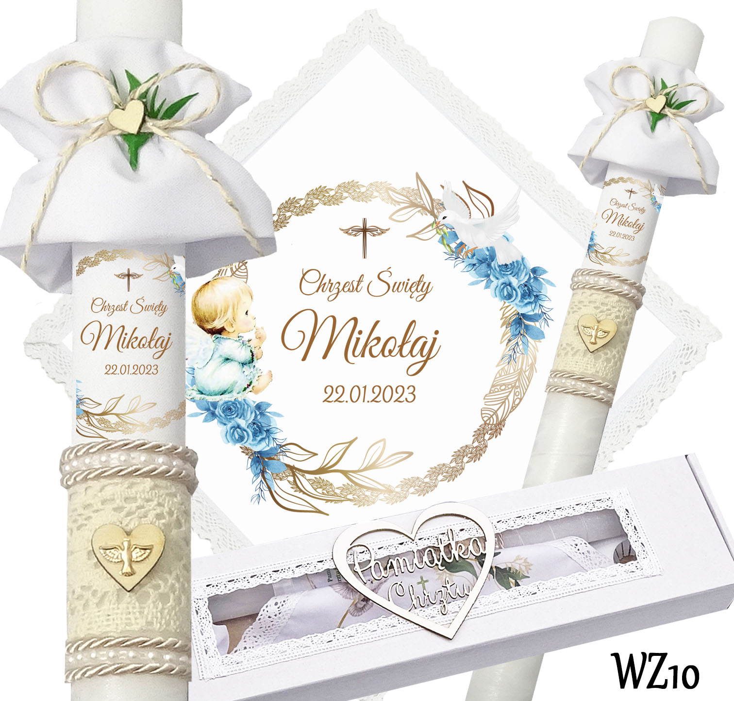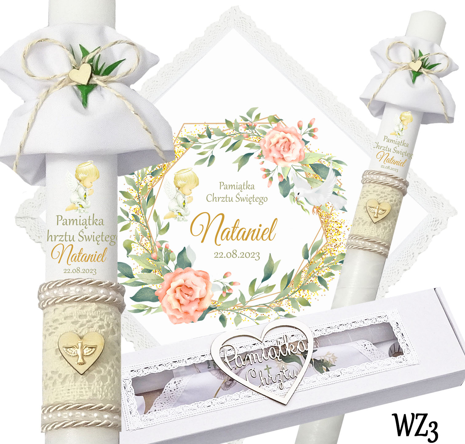Представляємо надзвичайний набір з хрестильної ризи та свічки, створений з урочистим подія в житті кожної дитини. Халат виготовлений з білосніжного матеріалу та оброблений бавовняним мереживом, що надає йому елегантності та ніжності. Свічка декорована вручну і має принт з ім'ям дитини, що робить її унікальним і унікальним сувеніром. Свічка має нитку бежевого кольору, на її поверхні мереживо і дерев'яне серце з золотим символом Святого Духа. Інша частина свічки обмотується білою шифоновою стрічкою. Все це упаковано в картонну коробку і в комплект входить тканинна перка. Цей унікальний набір із одягу та свічки, безумовно, підкреслить церемонію хрещення та посилить емоції та спогади, пов’язані з цією особливою подією.