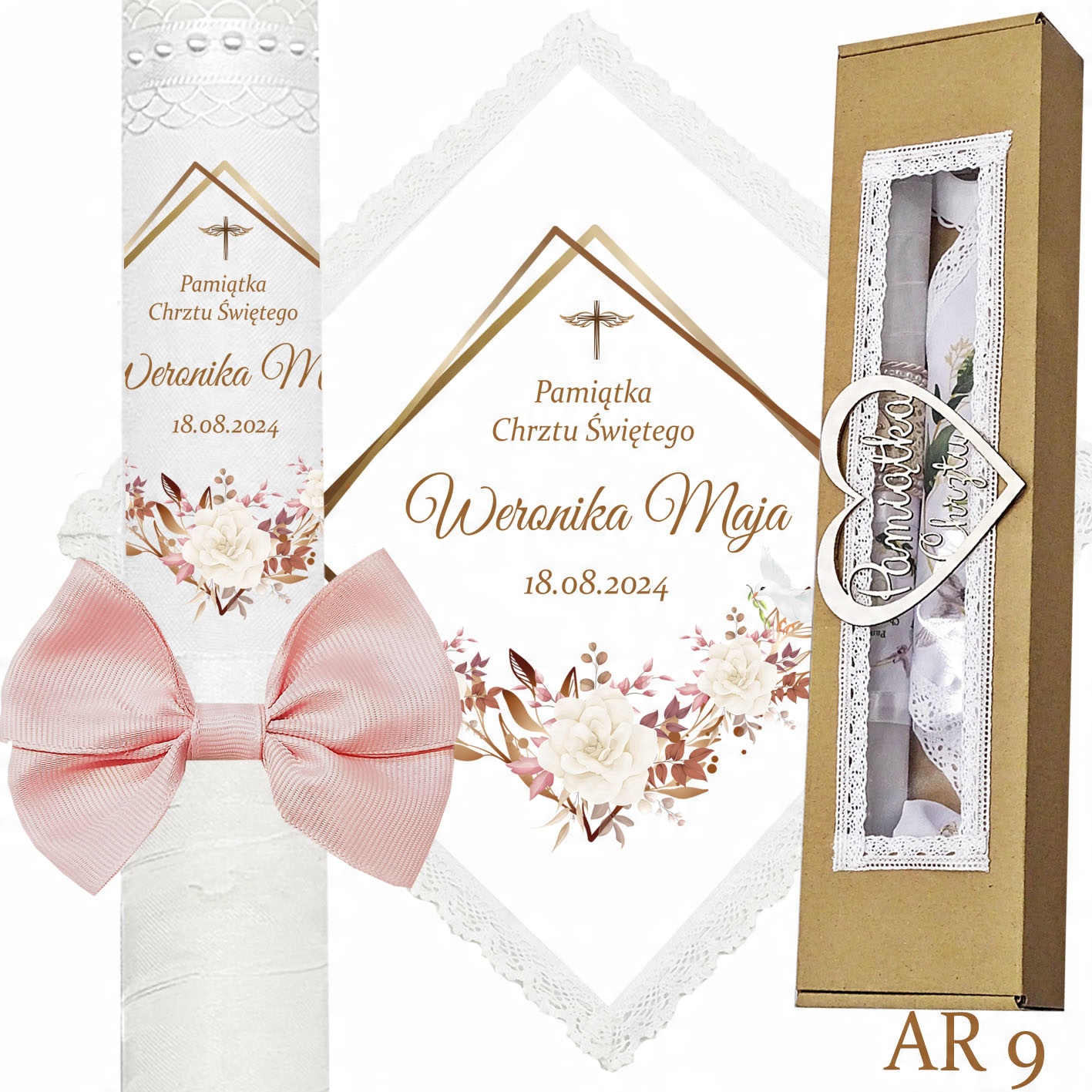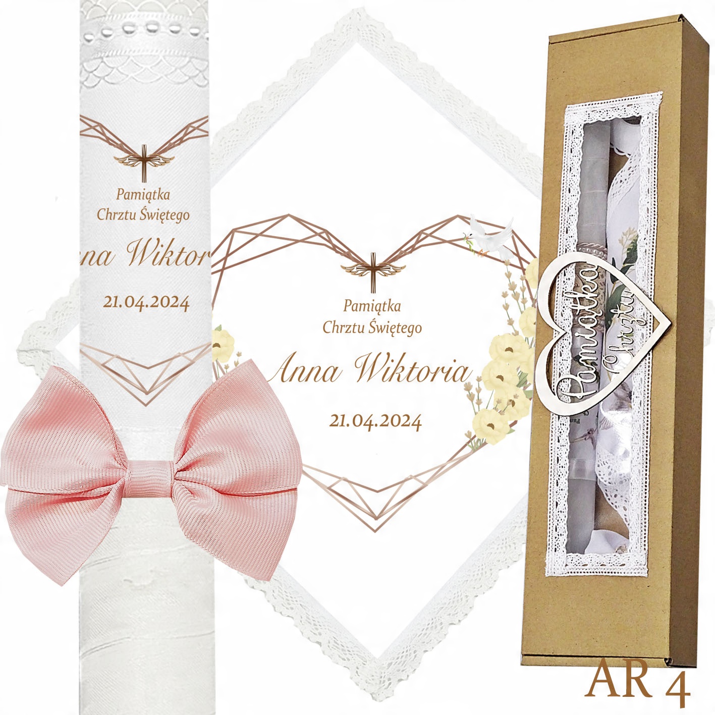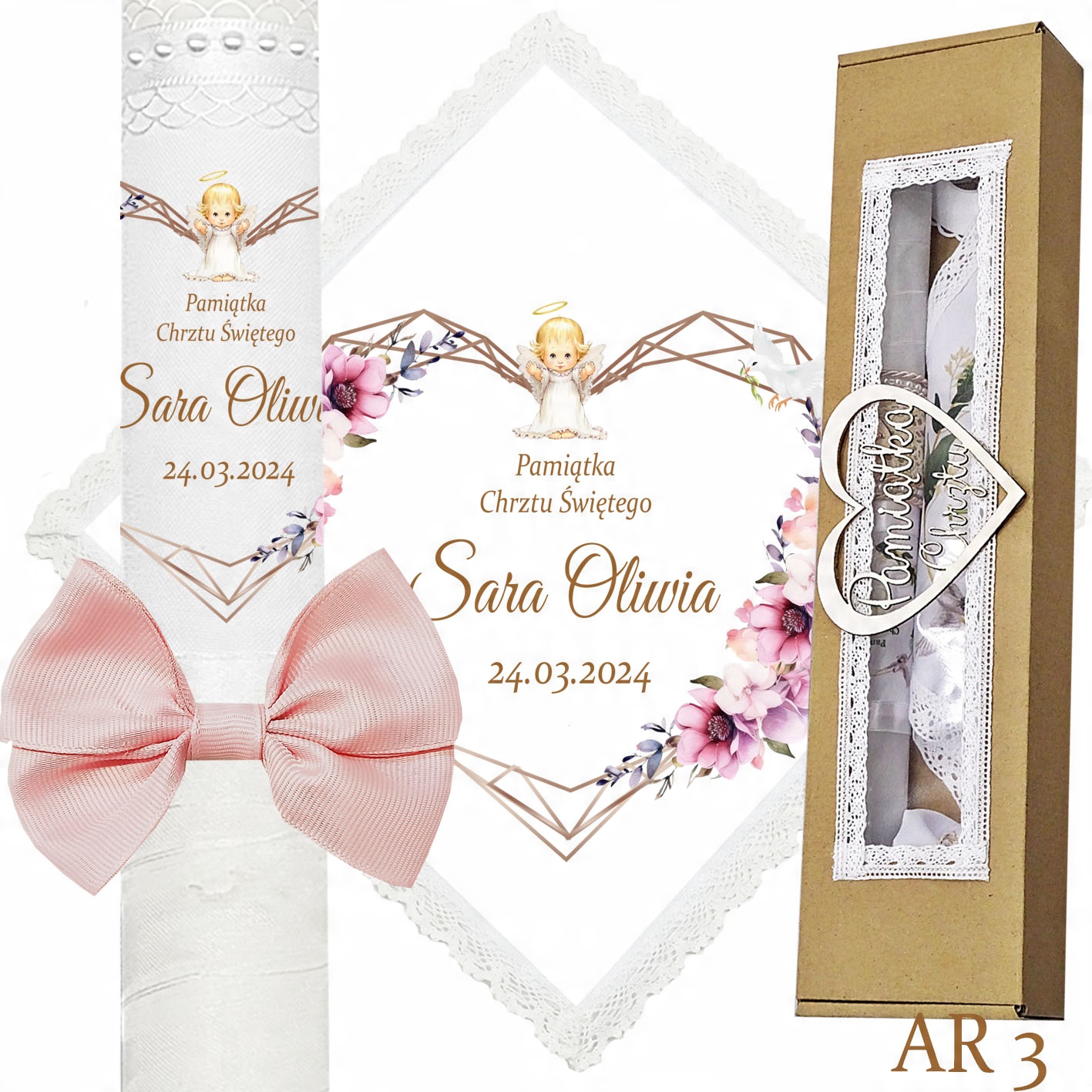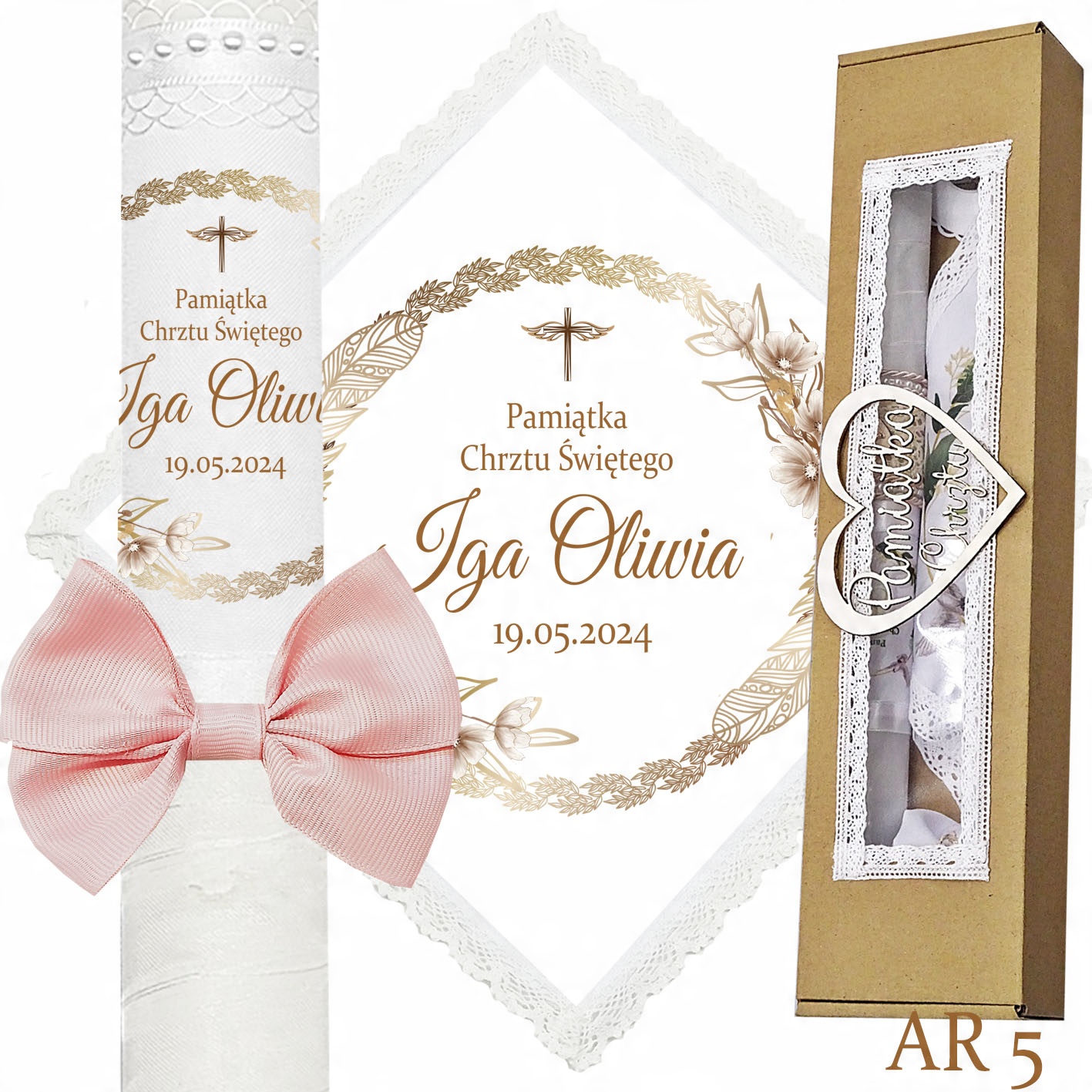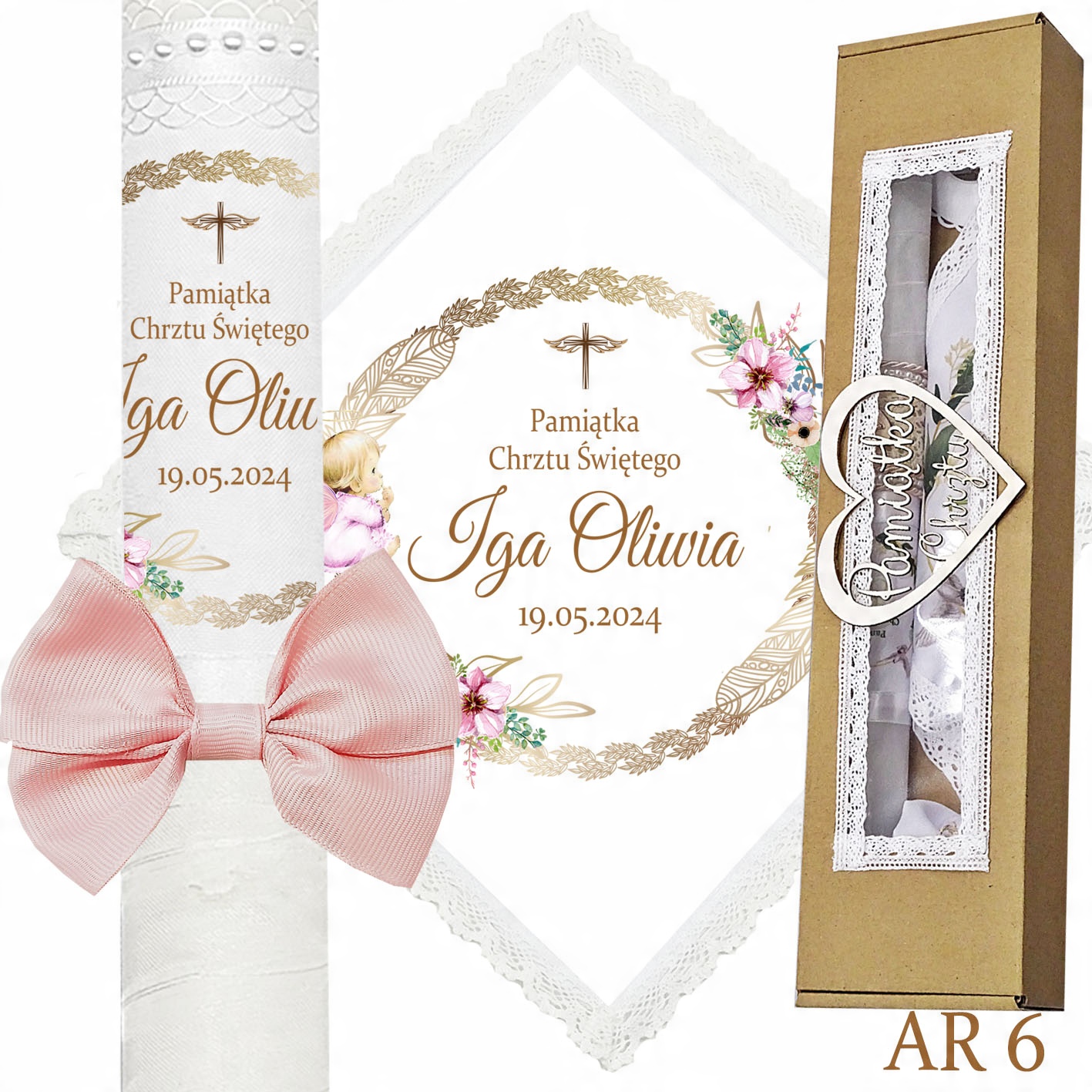 Свічка, яка супроводжує халат, виготовленаз найкращого воску b> Поставляється польським виробником. Його дизайн привертає увагу своєю простотою та унікальною обробкою. Свічка прикрашена білою шифоновою стрічкою, що додає їй неповторний характер і шарм. Верх свічки прикрашений атласним мереживом і білими перлами, що надає їй елегантності та шику, а матовий рожевий бант додає шарму.