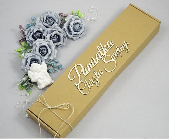 Еко коробка для хрестильної ряси та свічки – ідеальне рішення для людей, які шукають екологічну упаковку. Виготовлена з коричневого картону, коробка має на кришці 3D напис «Сувенір на Святе Хрещення», що надає їй елегантного вигляду. Додатково для прикраси ми додаємо джутову нитку, яка пасує до сільського стилю упаковки. Таким чином ви зможете естетично та екологічно зберігати хрестильну тканину та свічку.