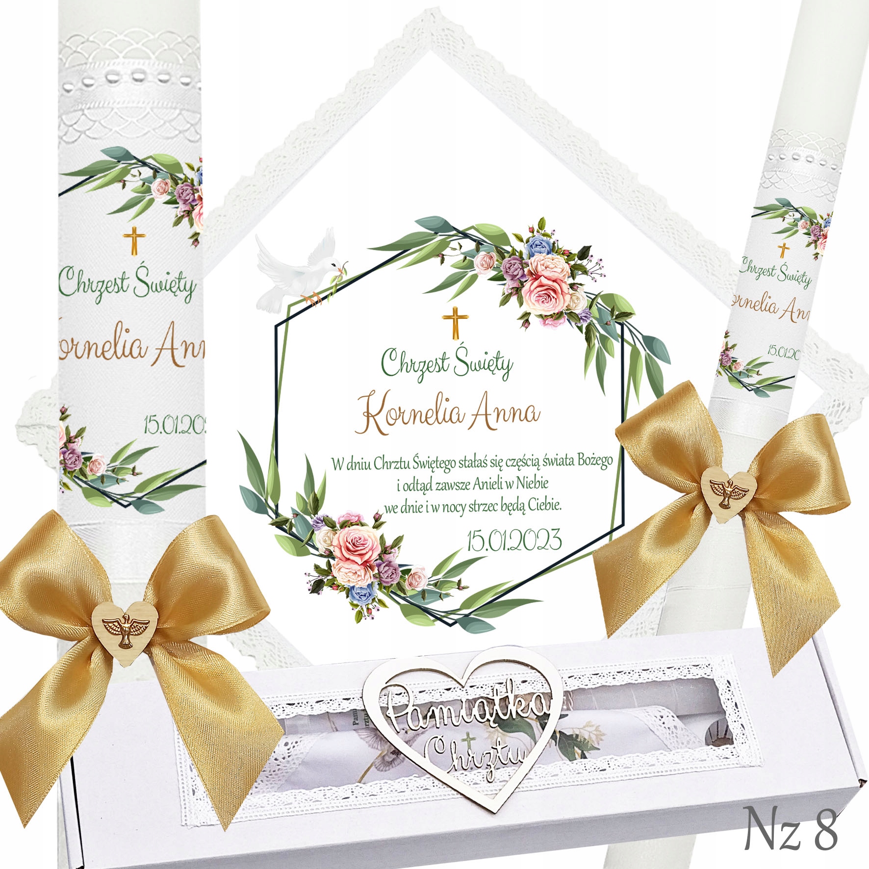 Представляємо незвичайний набір для хрещення, який складається з ризи та свічки, це ідеальний варіант. вибір для батьків, які хочуть відсвяткувати цей особливий день елегантно та незабутньо. Свічка була прикрашена білою шифоновою стрічкою, що додає їй неповторного характеру та шарму. Верх свічки прикрашений атласним мереживом і білими перлами, що надає їй елегантності та стилю. Лук з дерев'яним серцем і металевою золотою емблемою Святого Духа. додає милий і сентиментальний відтінок. Все було запаковано в декоративну коробку, в якій можна зберігати ці незвичайні сувеніри