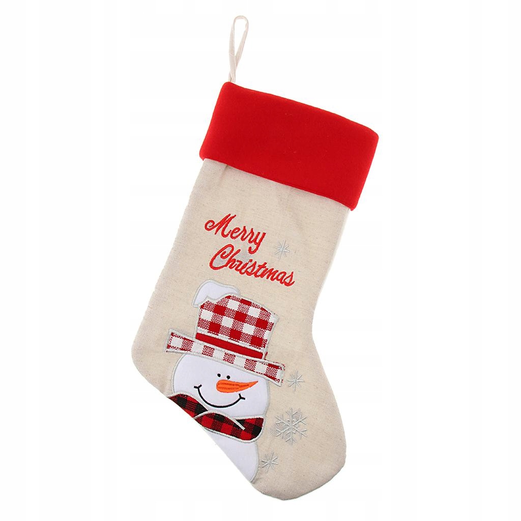 Різдвяна вишита льоном різдвяна панчоха Сумка для подарунків із цукерками Сніговик