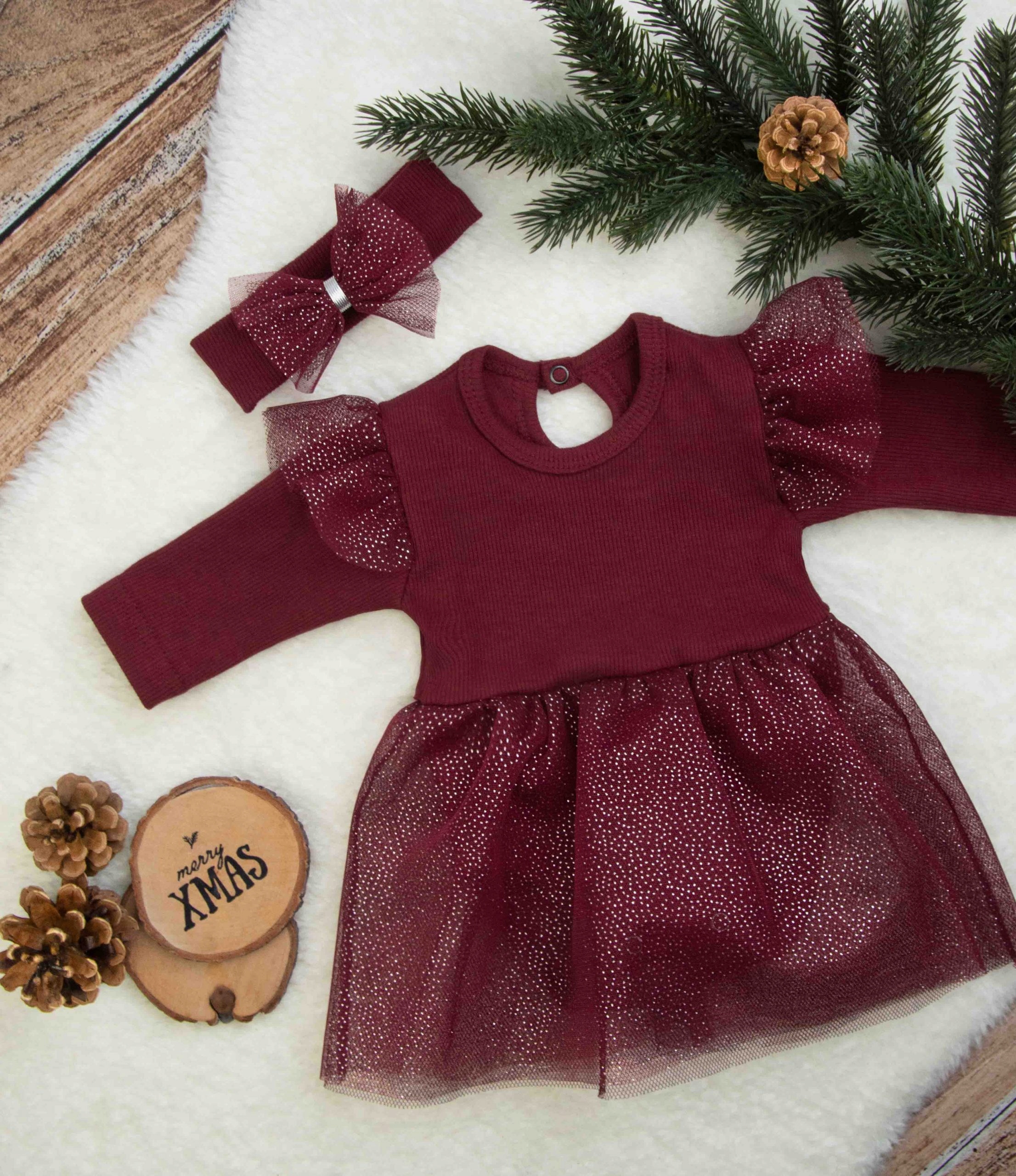 РІЗДВЯНЕ БОДІ, ТЮЛЬ, Оборки + ПОВ'ЯЗКА 62