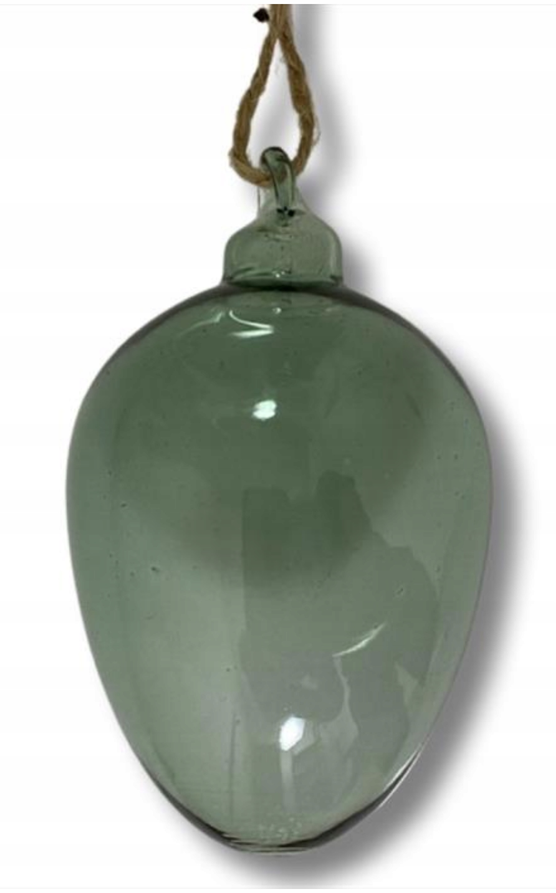 Ялинкова прикраса яйце із зеленого скла. Проста форма і характер прикраси стануть теплим доповненням будь-якого інтер'єру до наступаючих Великодніх свят. Універсальність декору дає необмежену кількість рішень і застосувань.