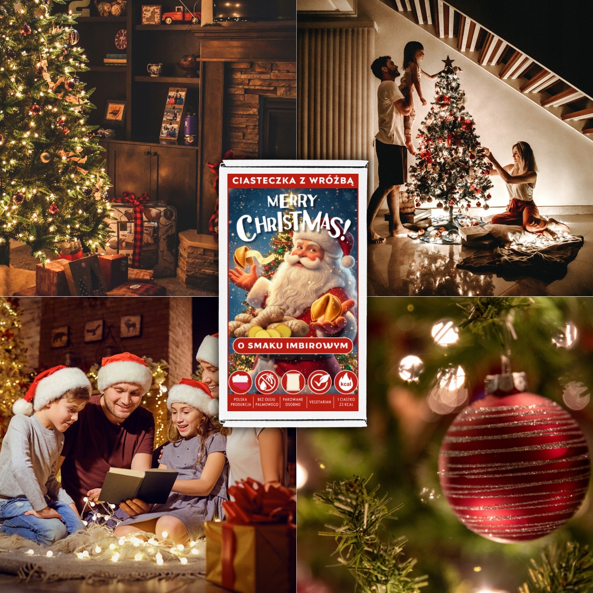У цій пропозиції імбирне печиво з передбаченнями постачається у готовій різдвяній упаковці з фольги – точно так, як на фото. Вам не потрібно нічого клеїти, готувати або персоналізувати самостійно. Завдяки цьому ви можете: