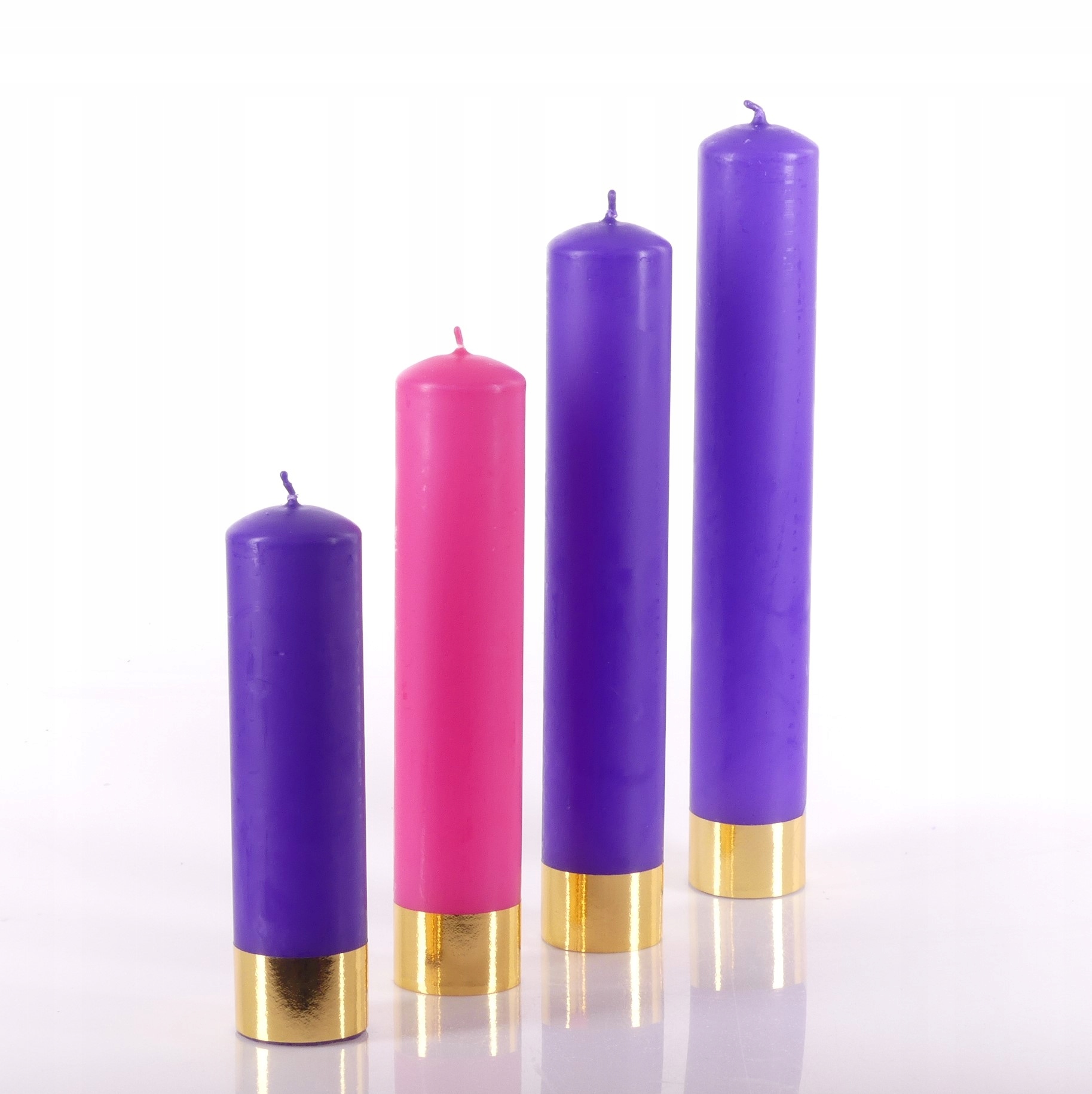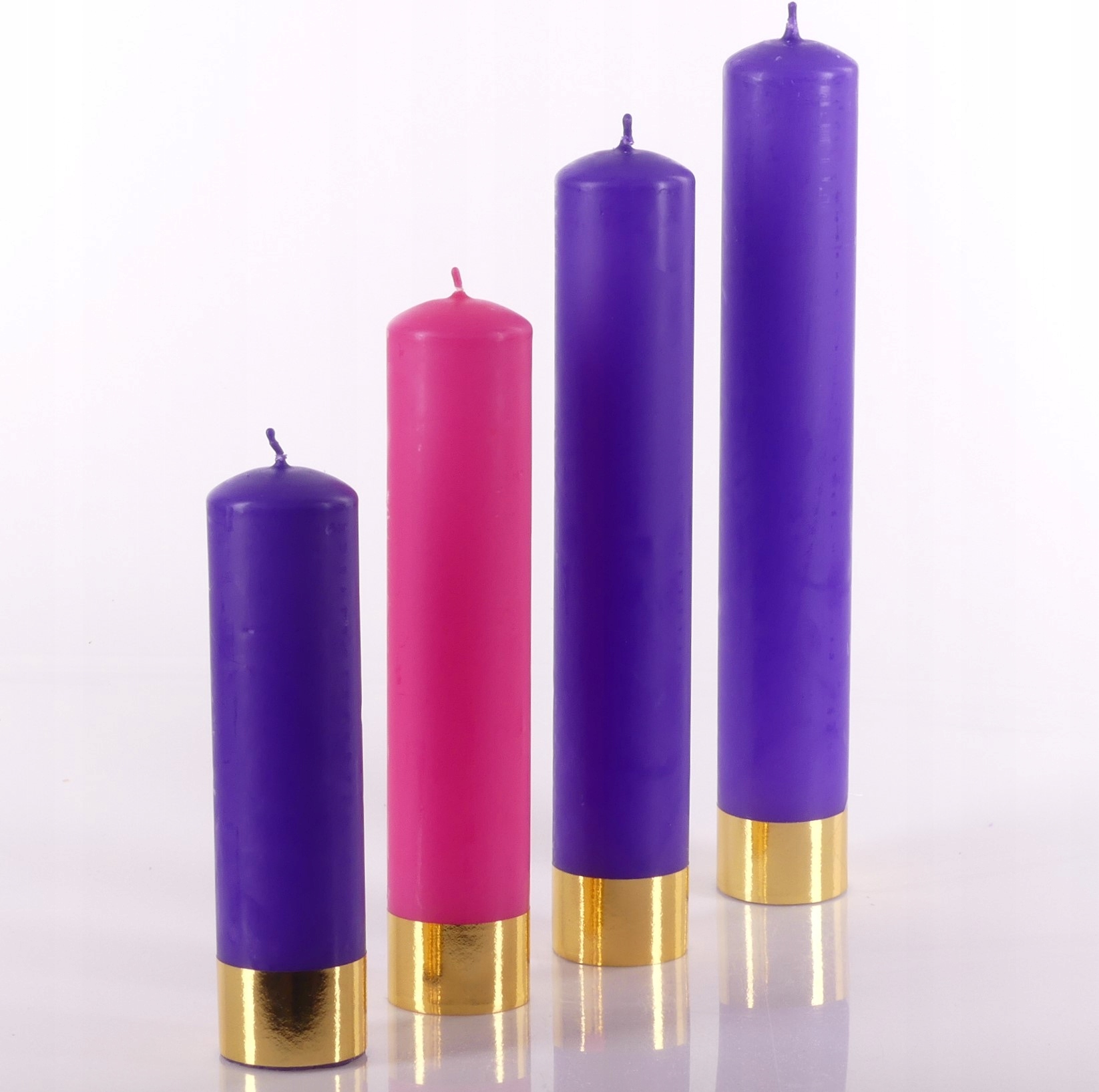 Набір із чотирьох градуйованих адвентових свічок — трьох фіолетових і однієї рожевої — є традиційним символом чотирьох неділь Адвенту, ідеально підходить для створення вінків і літургійних прикрас.