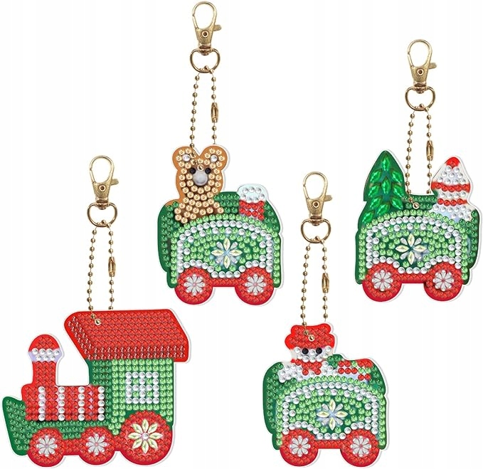 РІЗДВЯНІ БРЕЛКИ З ДІАМАНТАМИ DIY ПОЇЗДИ 4 ШТ