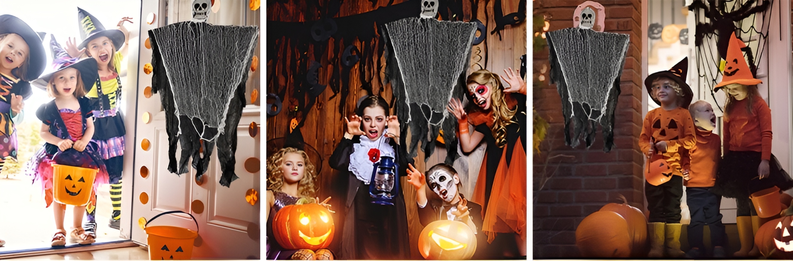 💀Рухається на вітрі: завдяки легкій конструкції, матеріал плавно рухається на вітрі, створюючи враження, ніби привиди ширяють у повітрі.