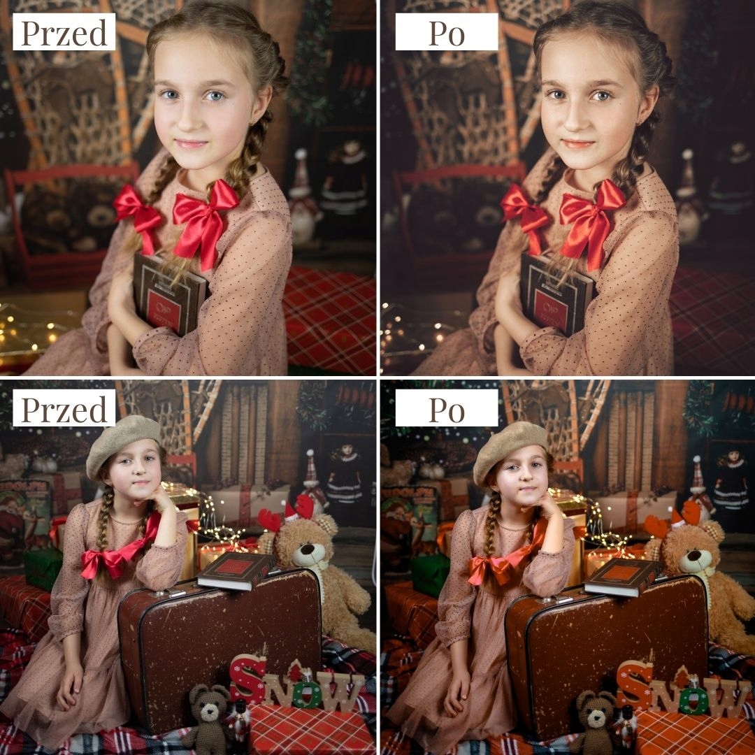 Фотографії та налаштування, включені в цей аукціон, належать мені. «Різдвяні пресети» — це дуже атмосферні фільтри, які чудово працюватимуть під час обробки фотографій із різдвяних сесій у студії та сесій на природі. Вони додадуть вашим фотографіям теплу і романтичну нотку. Стилі дуже добре працюють як із зображеннями RAW, так і з JPG.