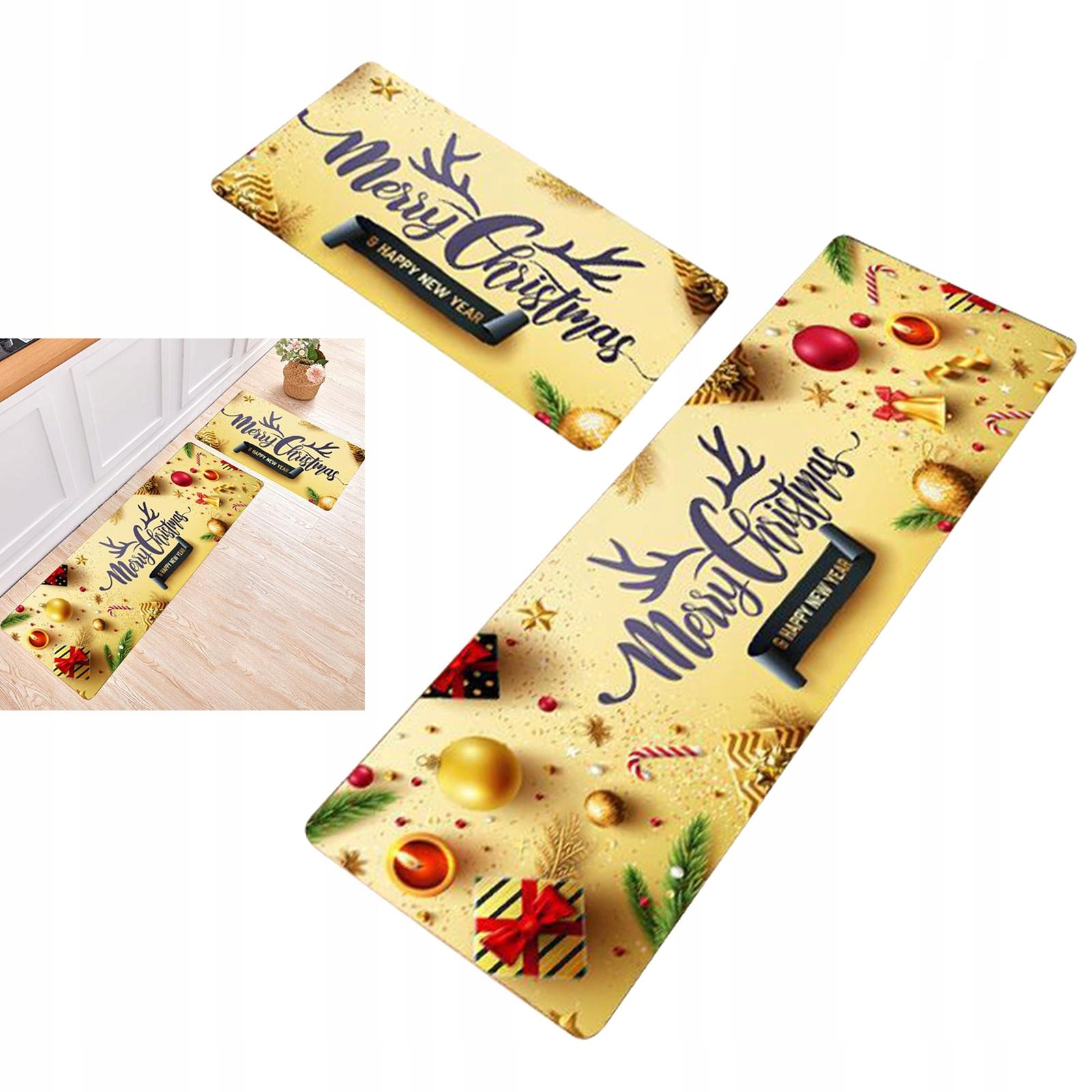 Різдвяні килими преміум-класу Килимок Санта-Клауса, міцний різдвяний килимок жовтого кольору