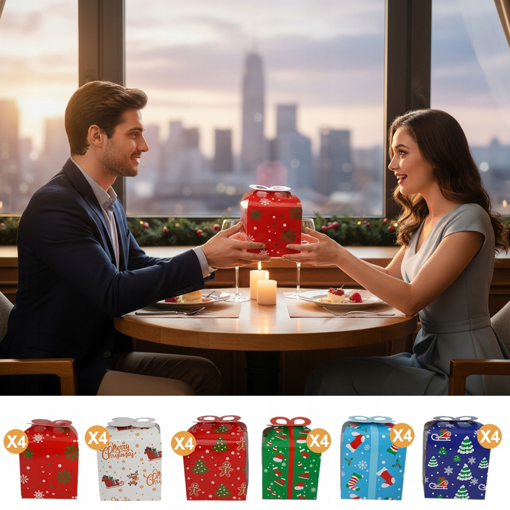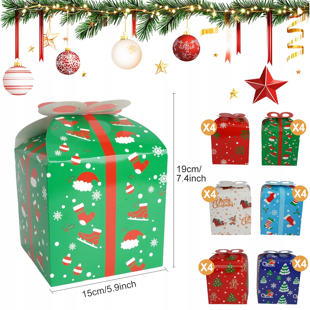 РІЗДВЯНІ КОРОБКИ 24 ШТ. 6 ДИЗАЙНІВ ДЛЯ ПОДАРУНКІВ ТА ПРИКРАС ДІМУ