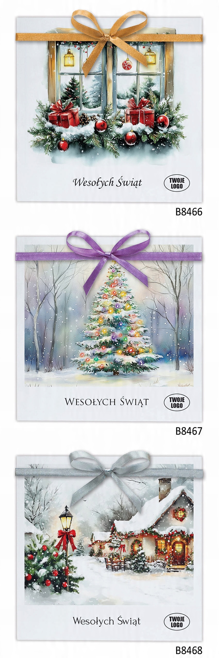 Різдвяні листівки для клієнтів, персоналізовані за допомогою логотипу стрічки конверта