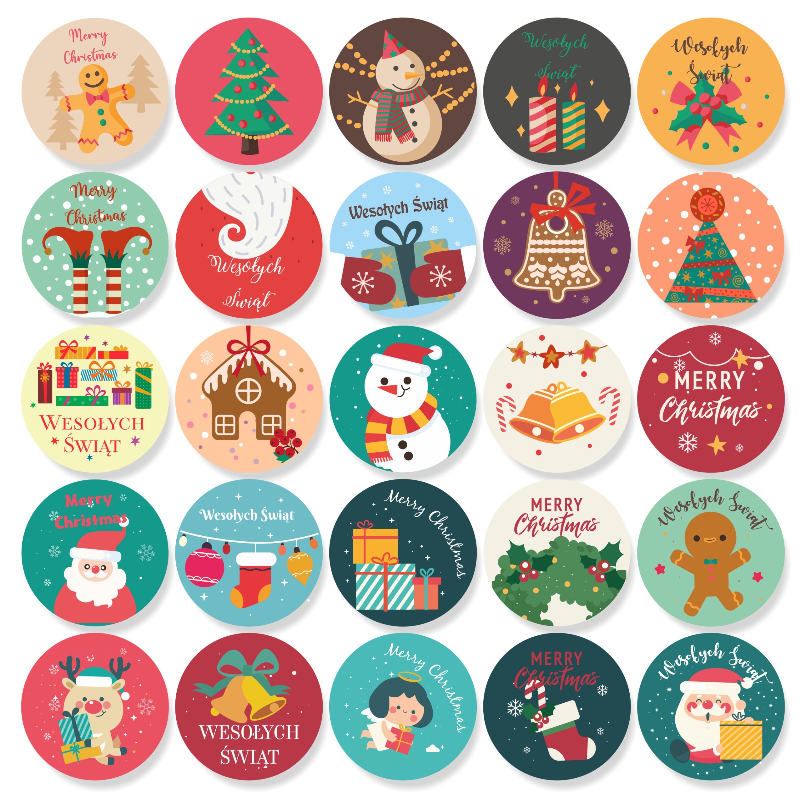 Різдвяні наклейки MIX подарункові етикетки 25шт