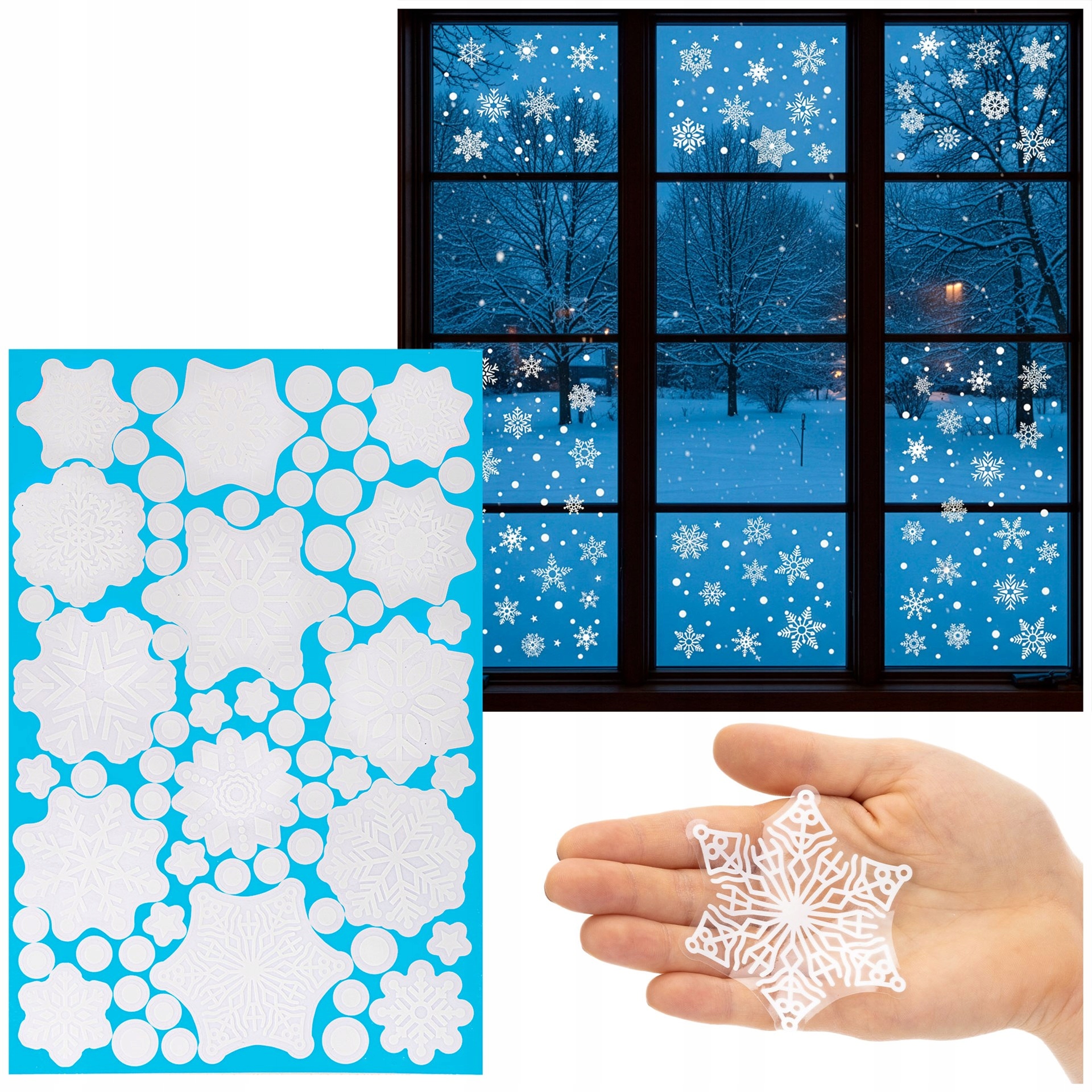 РІЗДВЯНІ НАЛІЙКИ НА ВІКНА 65 шт. ВІКОННІ ПРИКЛАСИ СНІЖИНКИ СНІЖИНКИ