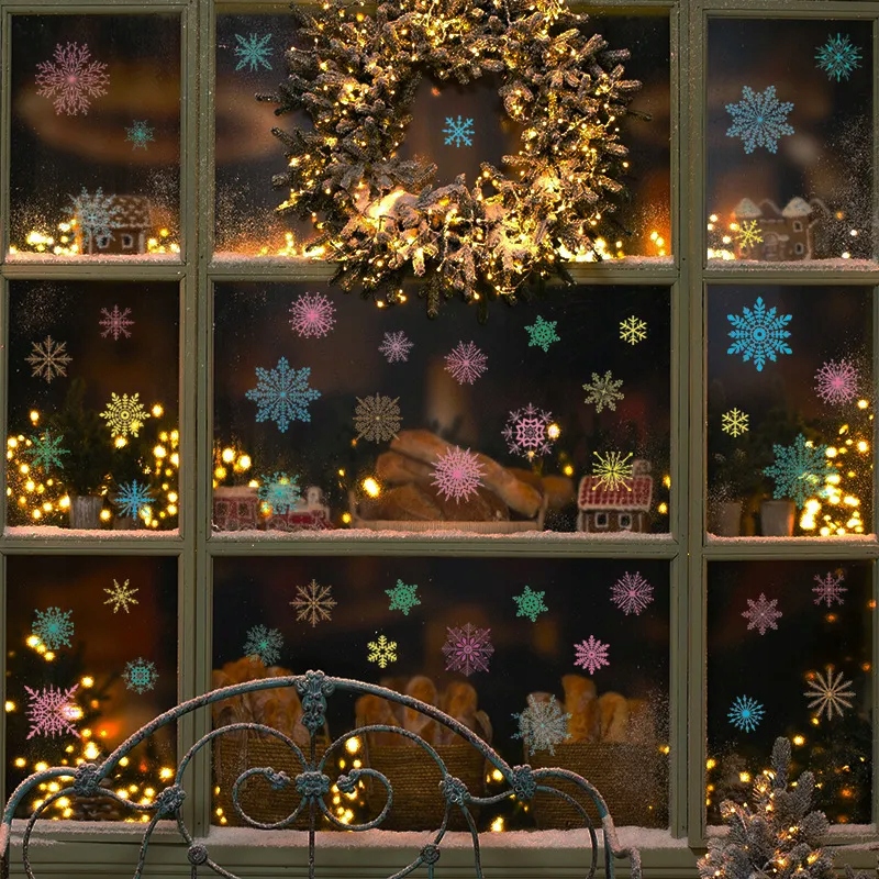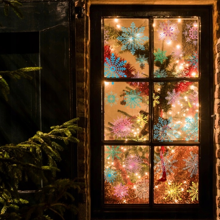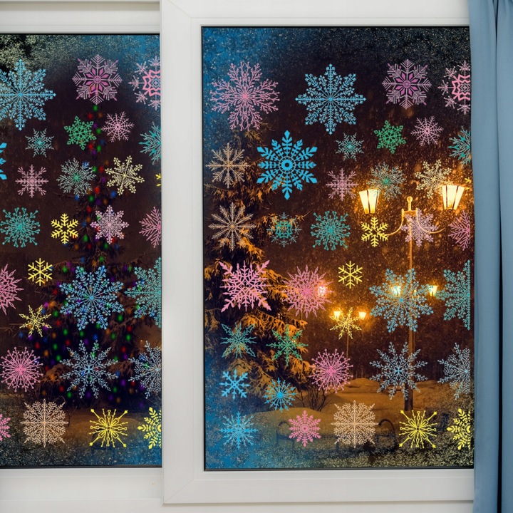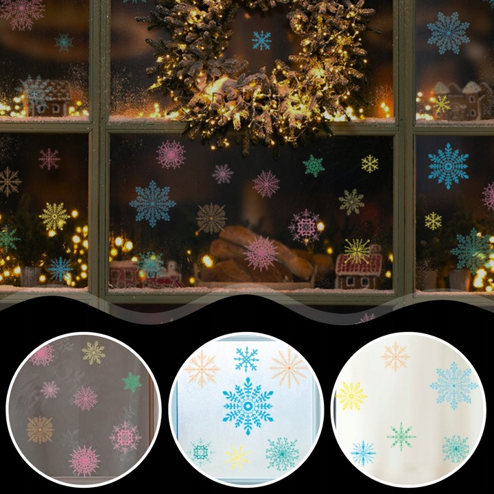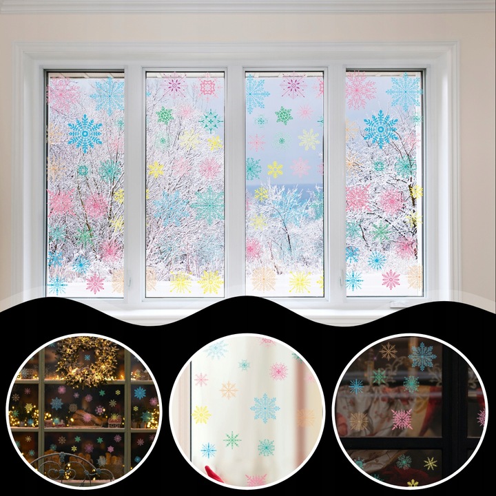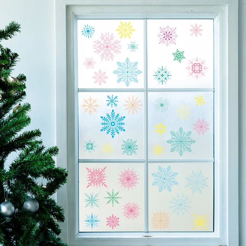 ❄ Віконні наклейки барвисті сніжинки є ідеальними як зимова або святкова прикраса. 4