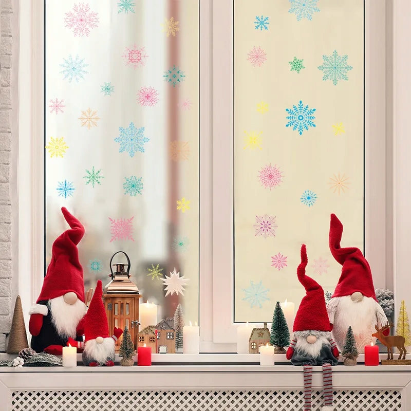 Різдвяні наклейки на вікні Барвисті сніжинки Сніжинки встановлені