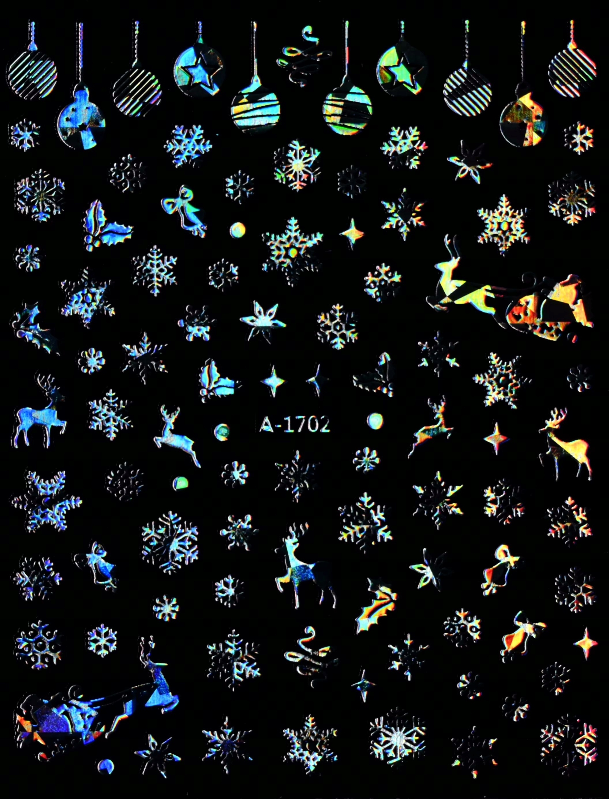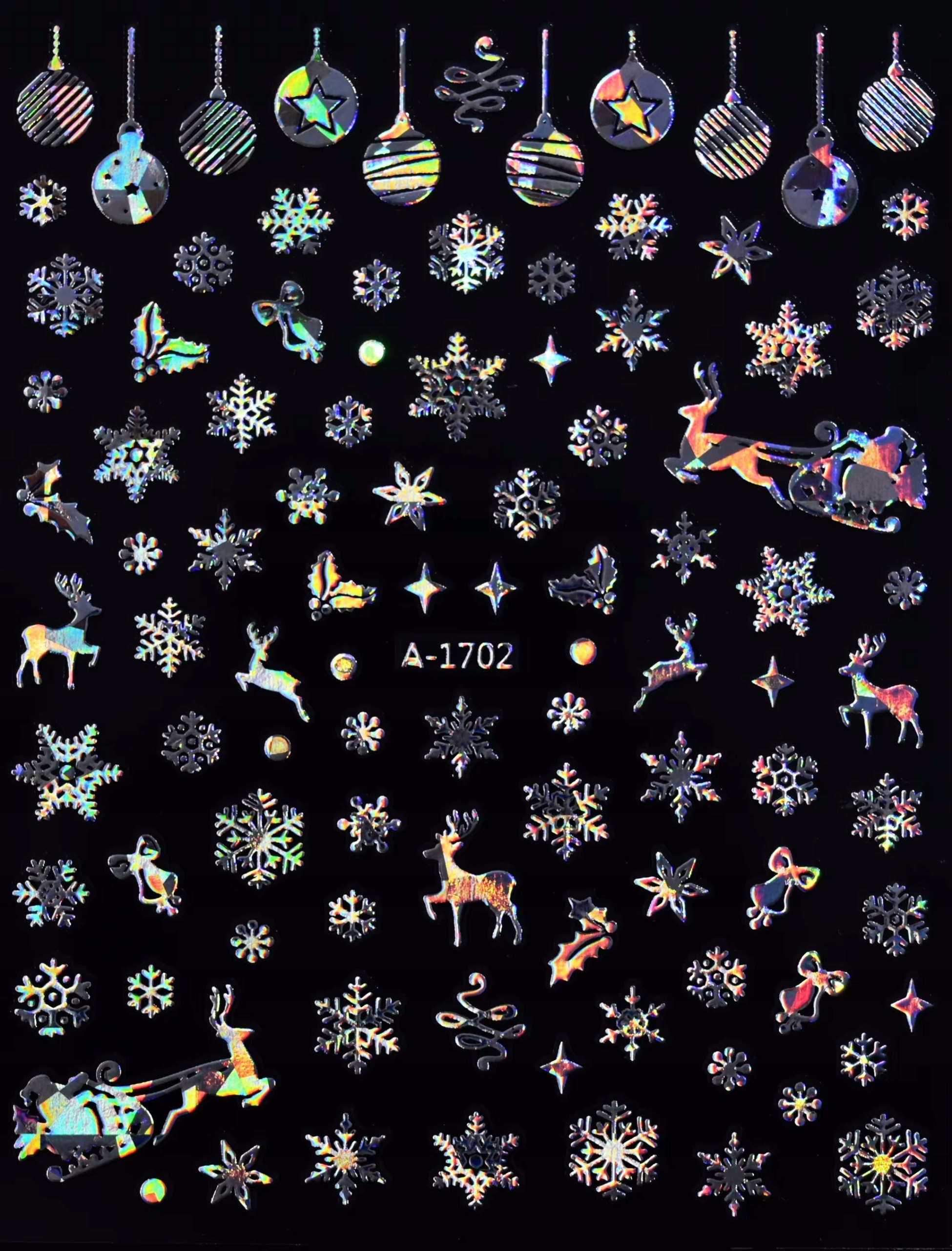 Різдвяні наклейки нігтів блискучі - свята, сніжинки, оленя