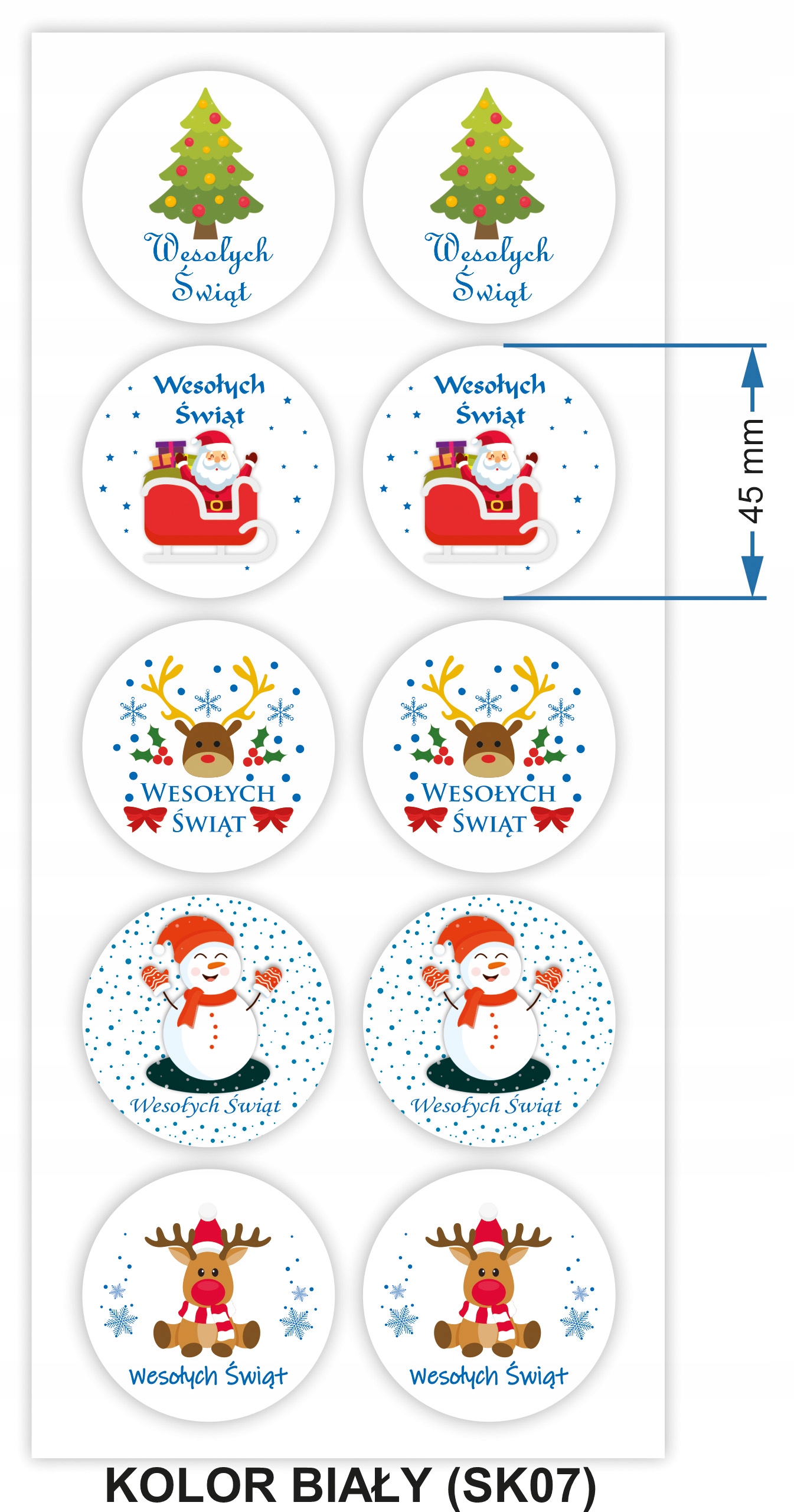 Кольорові різдвяні наклейки ECO 10 шт., 45 мм, декоративні, для подарунків тощо.